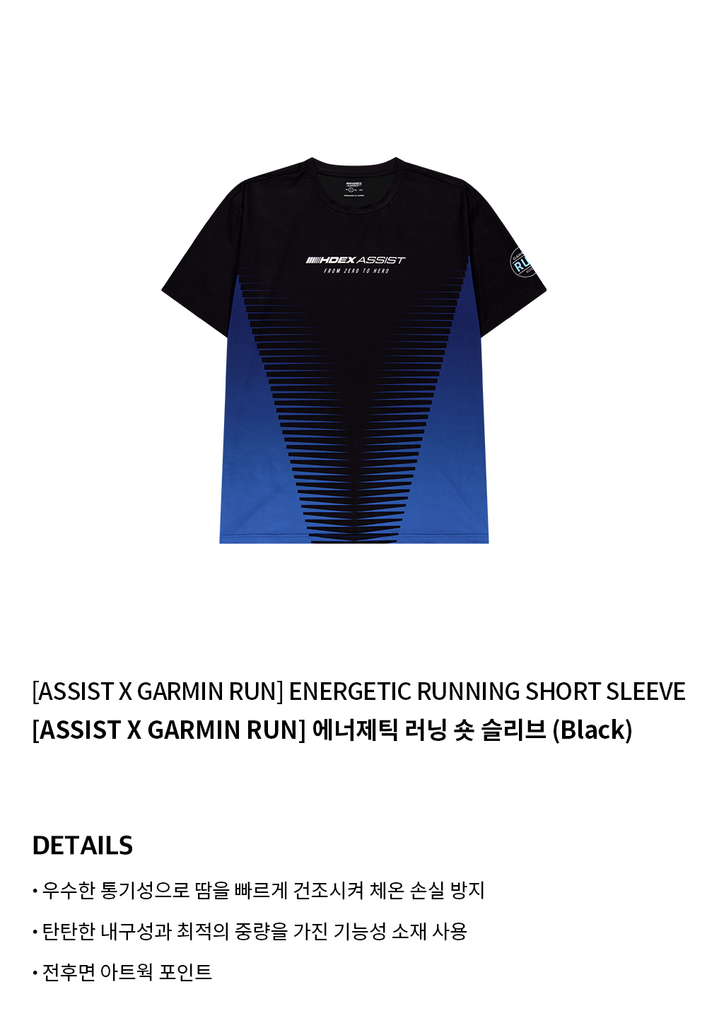 에이치덱스 어시스트 X 가민 런 에너제틱 러닝 숏 슬리브 블랙