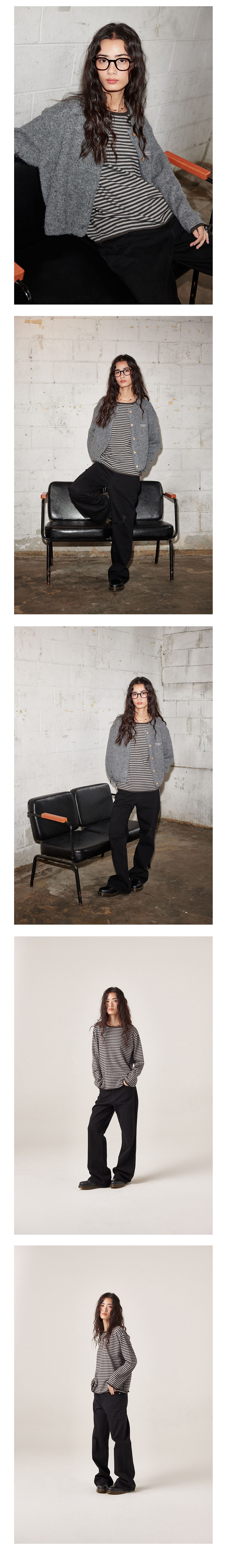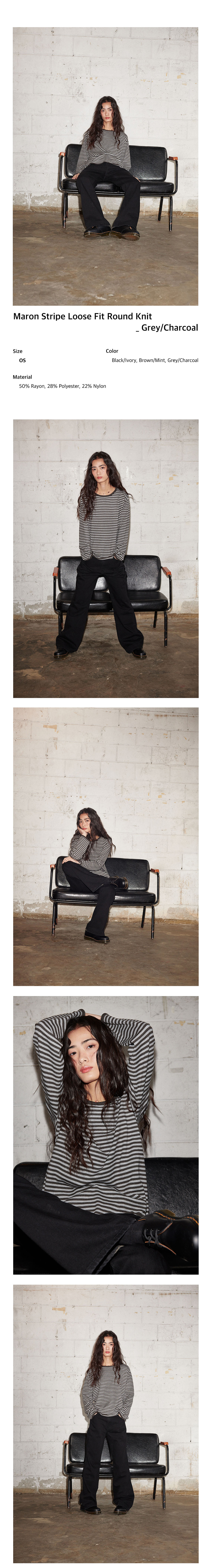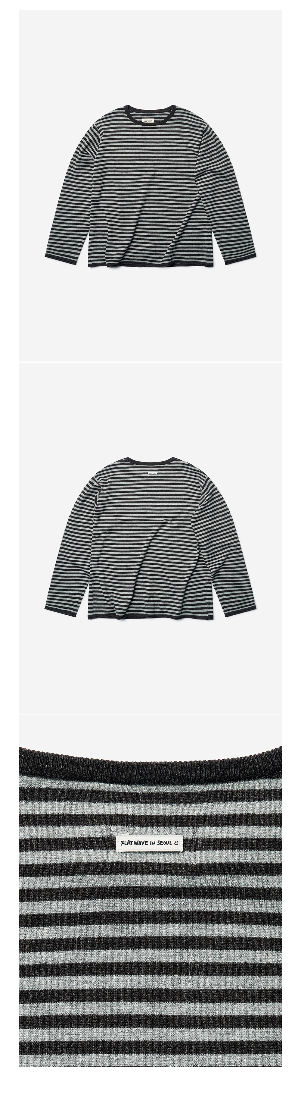 플랫웨이브 인 서울 마론 스트라이프 루즈 핏 라운드 니트 그레이/차콜