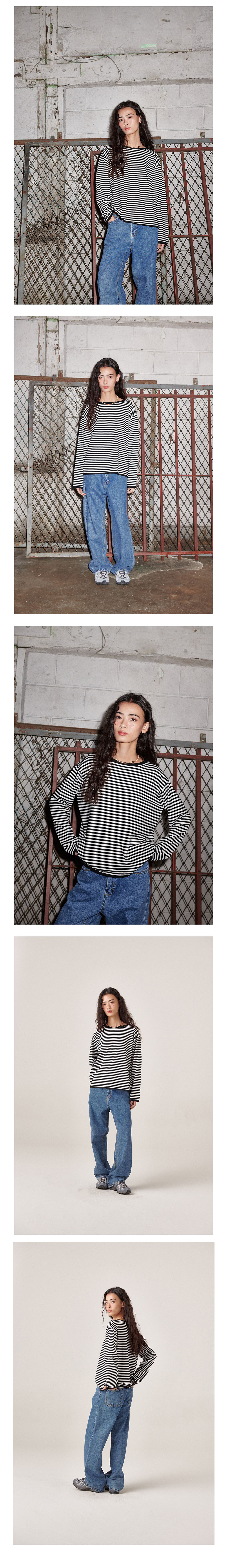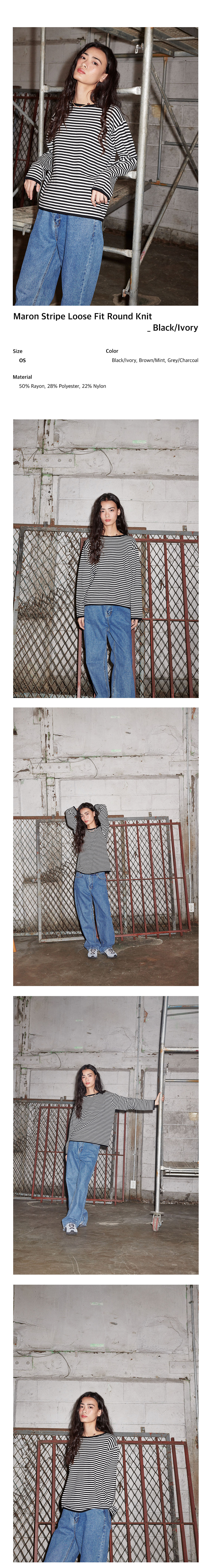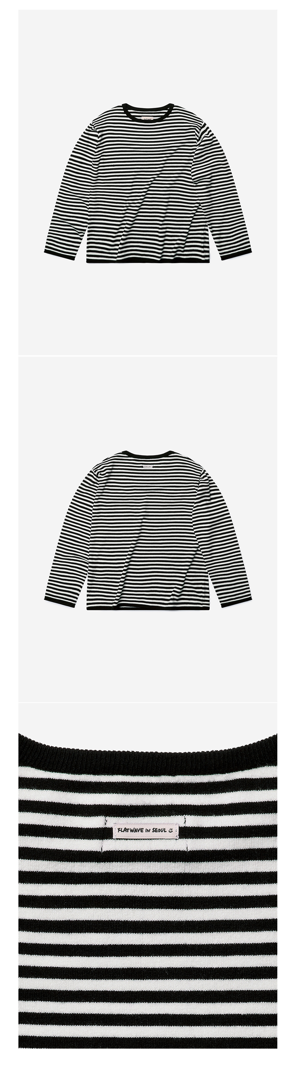 플랫웨이브 인 서울 마론 스트라이프 루즈 핏 라운드 니트 블랙/아이보리