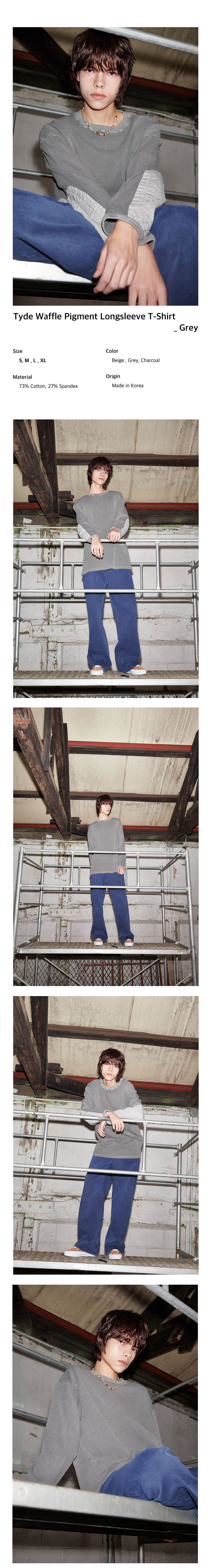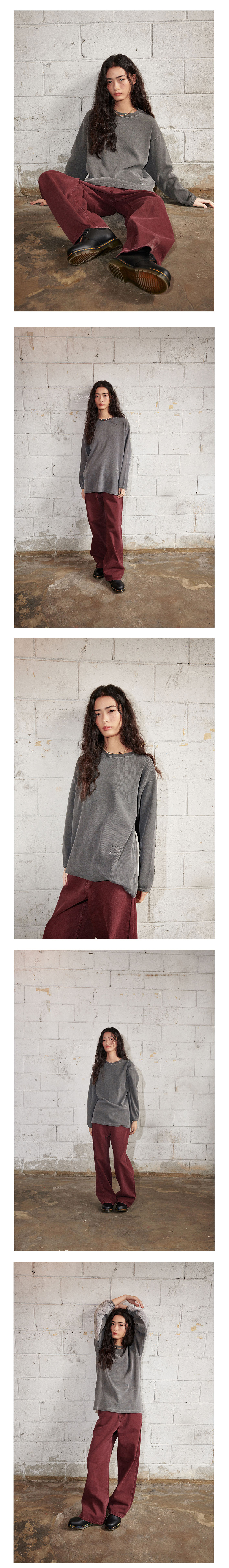 플랫웨이브 인 서울 타이드 와플 피그먼트 롱슬리브 티셔츠 그레이