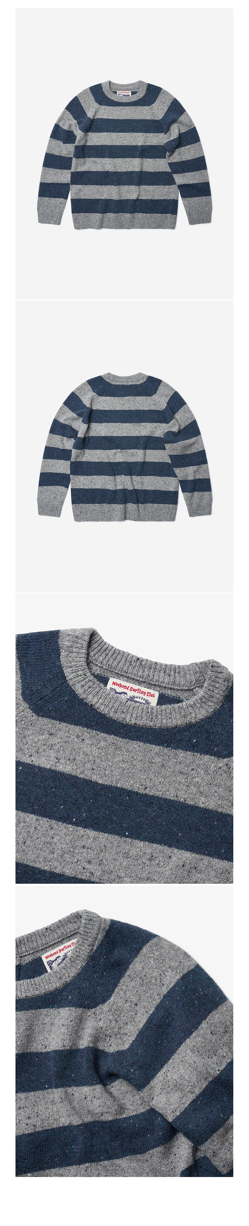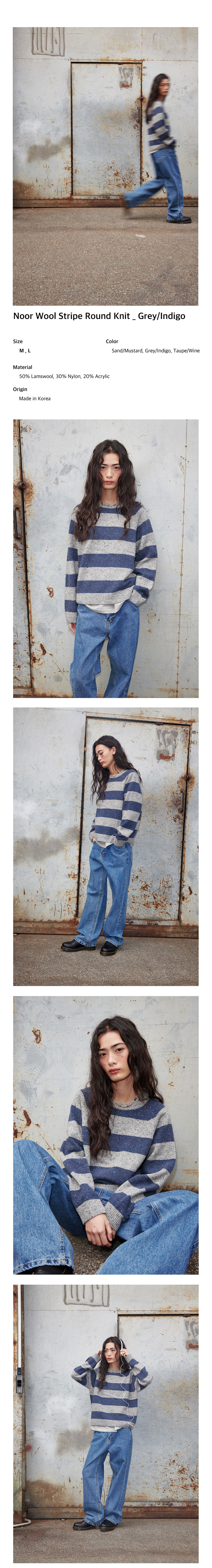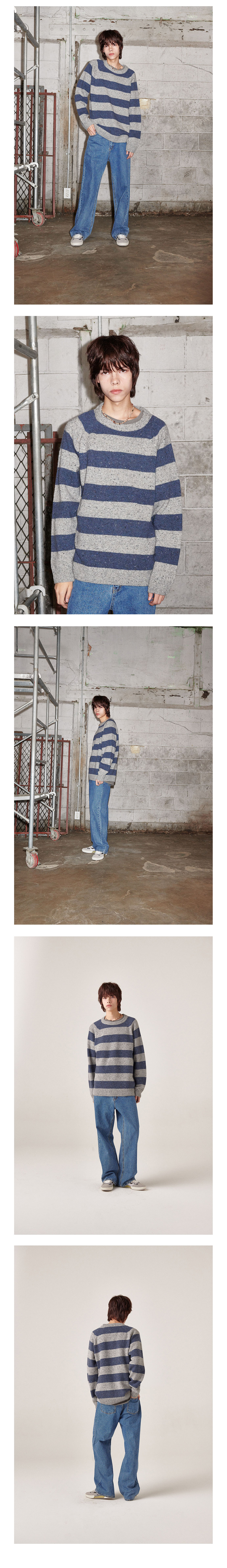 플랫웨이브 인 서울 누아 울 스트라이프 라운드 니트 그레이/인디고