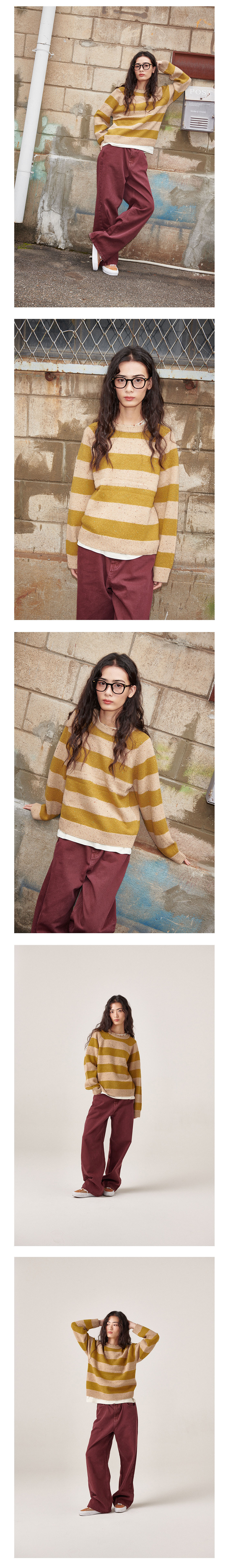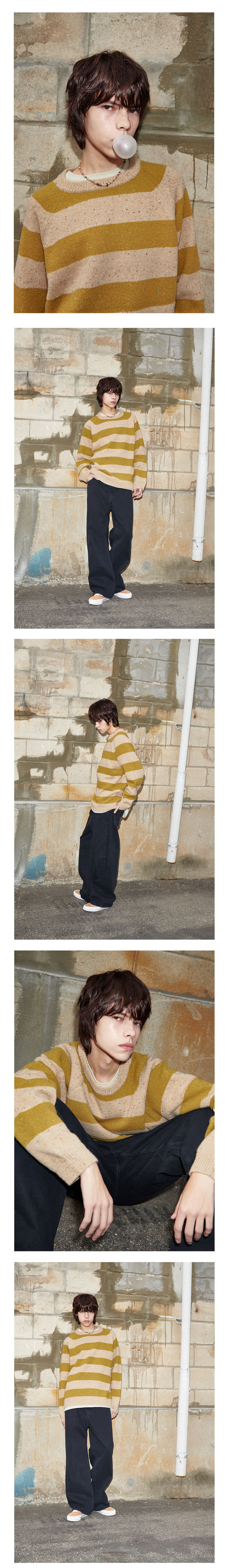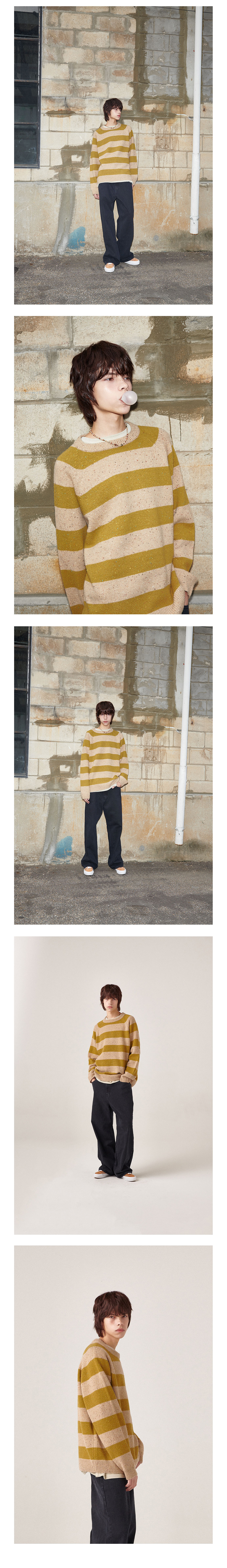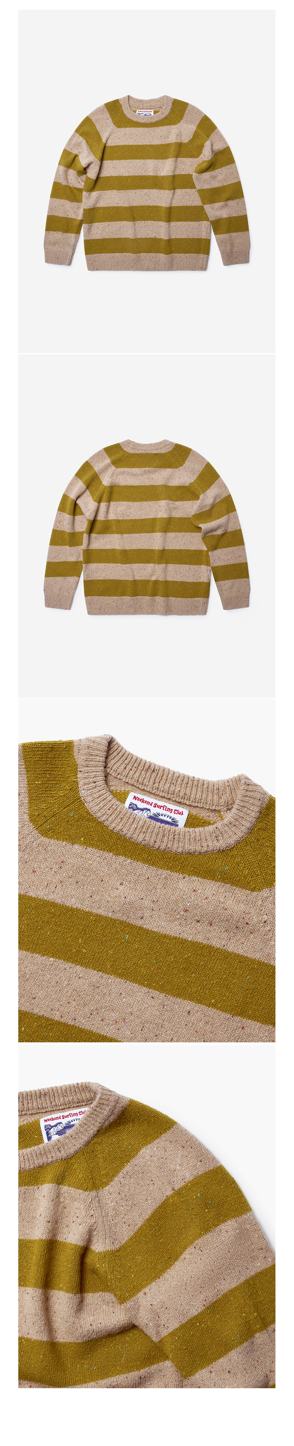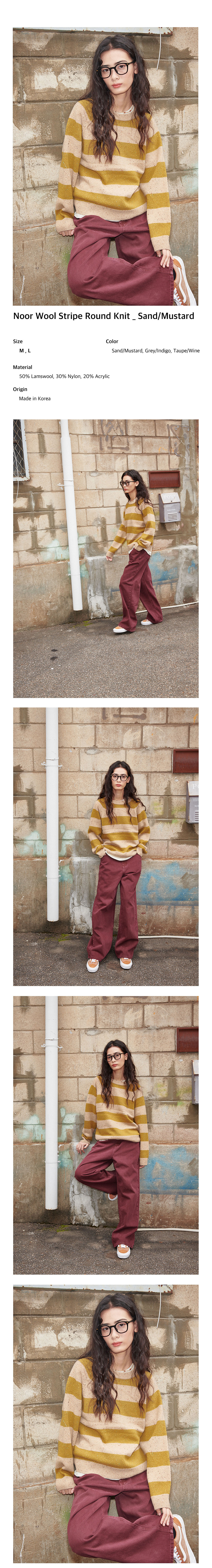 플랫웨이브 인 서울 누아 울 스트라이프 라운드 니트 샌드/머스타드