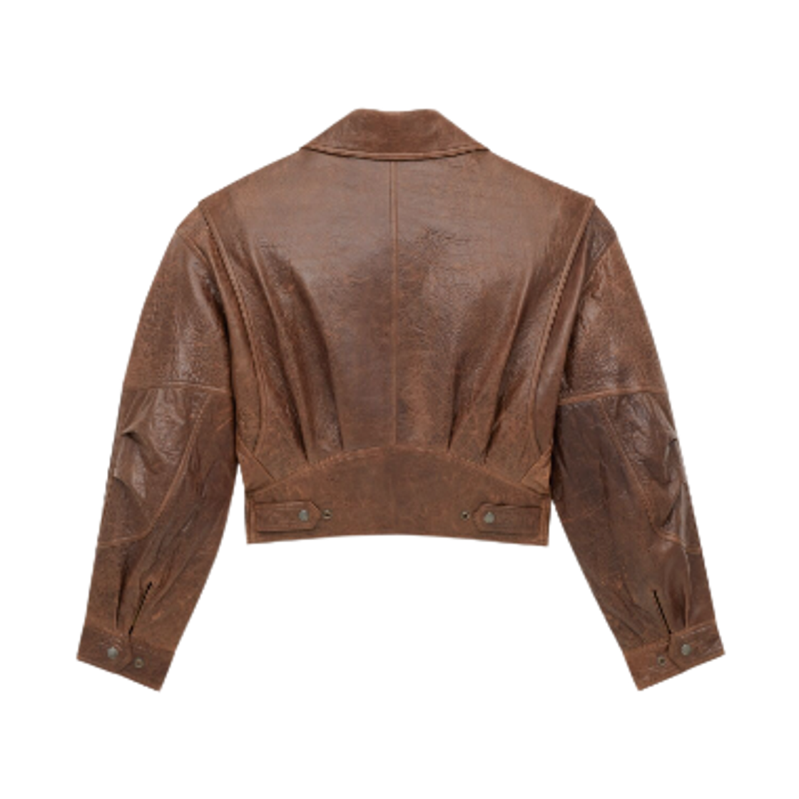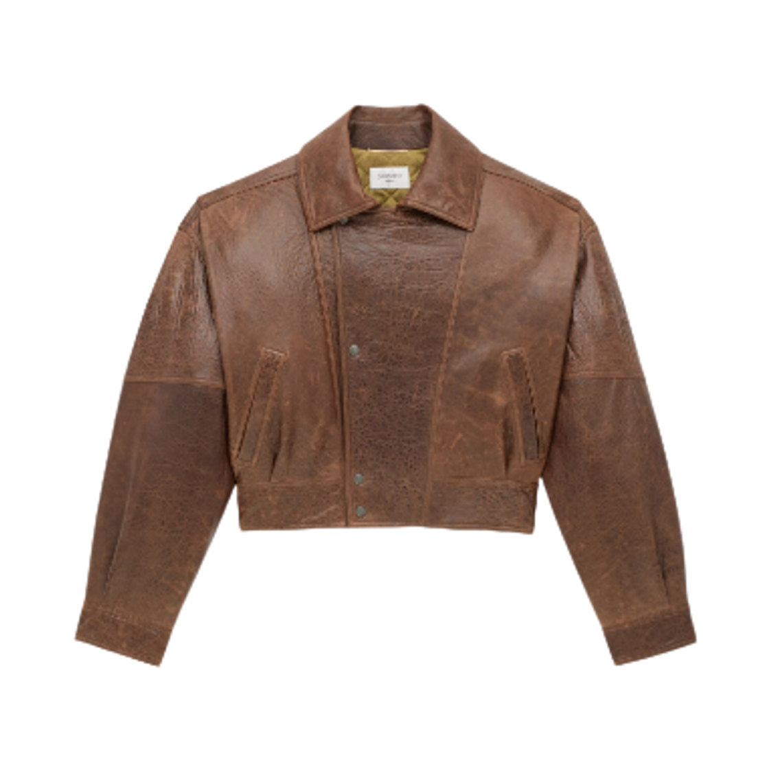 (W) Saint Laurent Vintage Lambskin Bomber Jacket Brun Chene Marron Terracotta