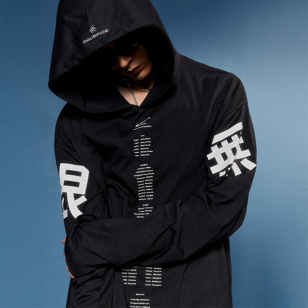 Product Description. ㆍDirected by Ingyoo ㆍ전면 엔딩 크레딧 프린팅 ㆍ소매 眼下無人 프린팅 ㆍ후드 로고 자수 ㆍ벌키한 실루엣 ㆍ16수 코튼 100% ㆍDirected by Ingyoo ㆍFront ending credit printing ㆍSleeve “眼下無人” printing ㆍHood embroidered logo ㆍBulky silhouette ㆍ100% Cotton (16s) 실제 제품 컬러는 제품컷이 가장 가깝습니다. 구매 시 꼭 참고해 주세요. Product Size & Info. Size : One Size Color : Vintage Black Fabric used : Cotton 100% One Size : Chest 60 / Shoulder 66 / Sleeve length 73 / Hem 71 / Length 81 Model Spec. Man : 189cm / 70kg / One Size 착용 MADE IN KOREA.