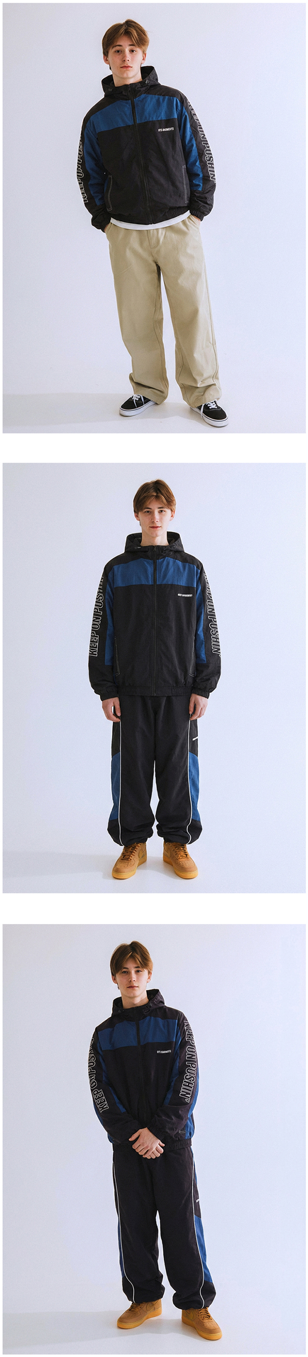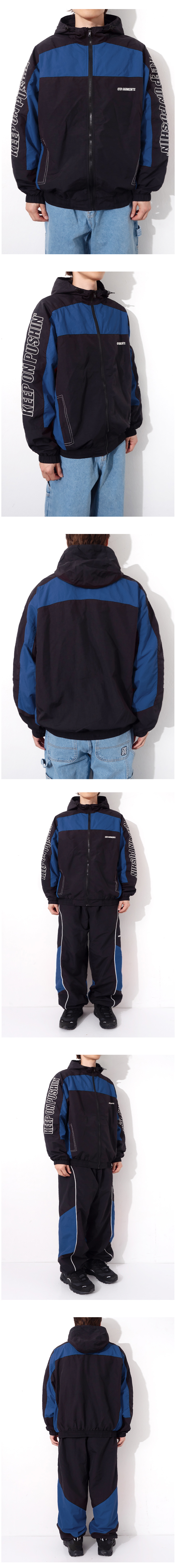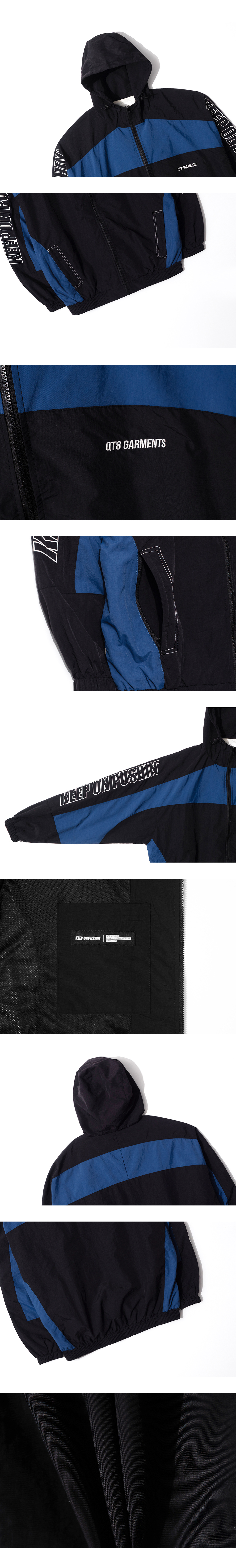 큐티에잇 가먼츠 레트로 후디드 트랙 자켓 블랙블루