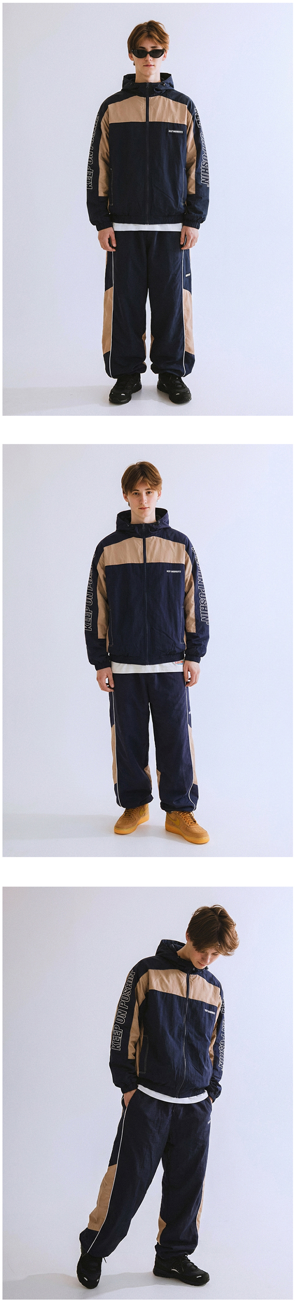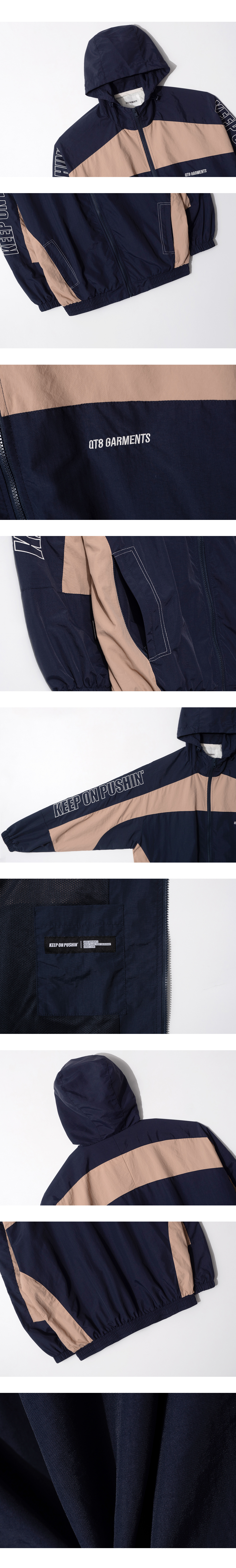 큐티에잇 가먼츠 레트로 후디드 트랙 자켓 네이비베이지