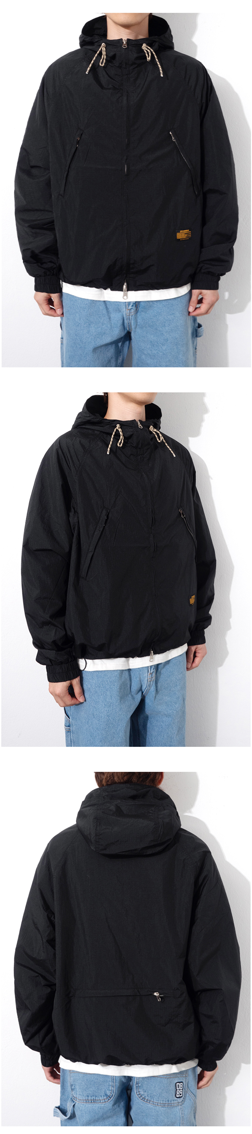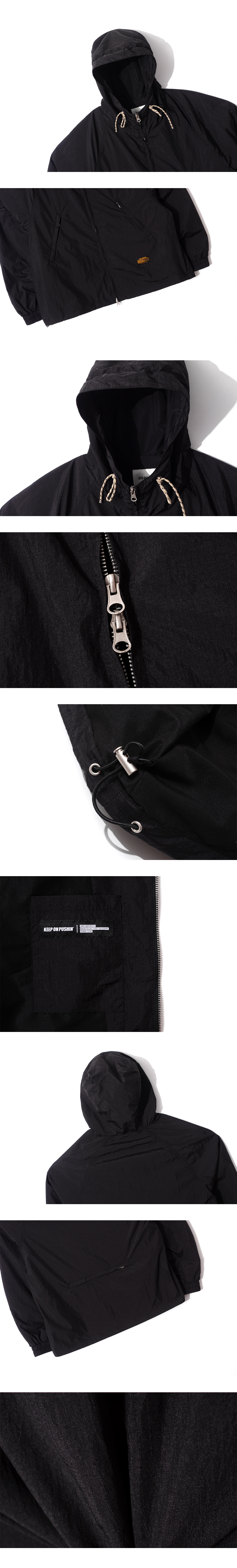 올드스쿨한 컬러웨이의 윈드브레이커입니다. 립스탑 나일론 원단을 사용해 가볍고 내구성이 뛰어납니다. 후드 포인트 스트링 디테일로 빈티지 무드를 더하고 밑단 스트링을 통하여 다양한 실루엣을 연출함과 동시에 활동성을 살렸습니다.