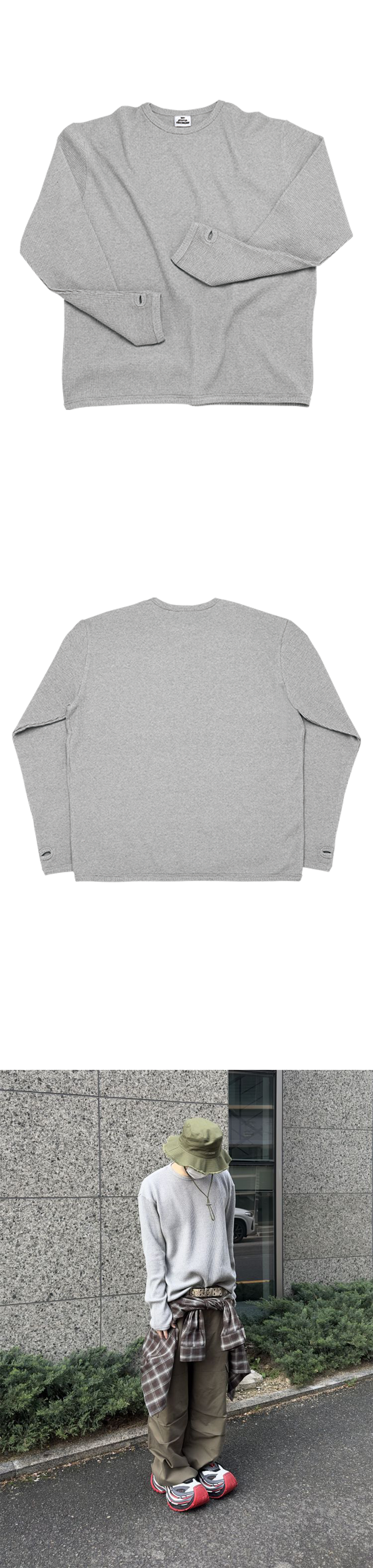 엠제이디 와플 핑거홀 롱슬리브 멜란지그레이
