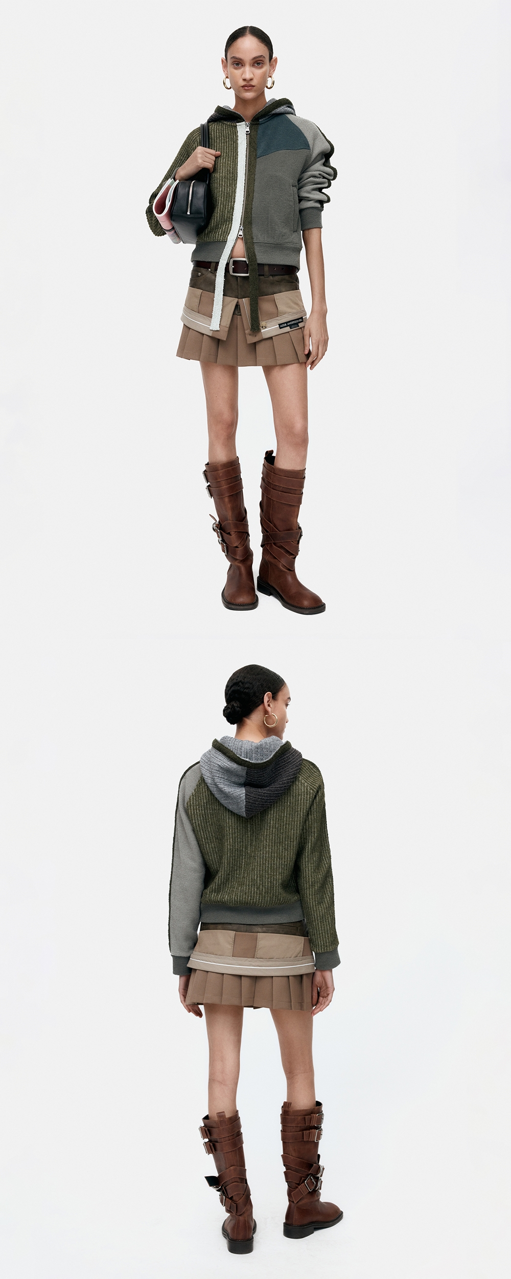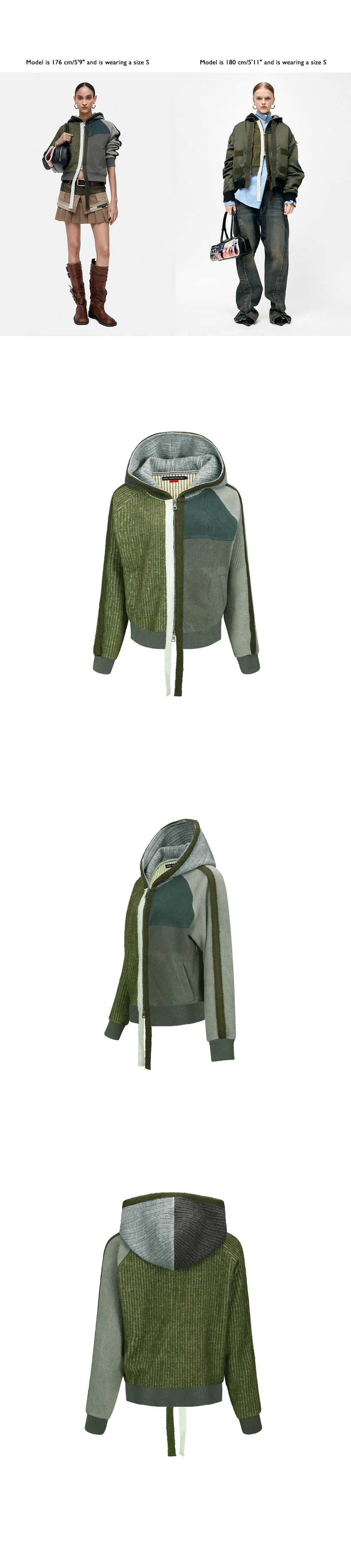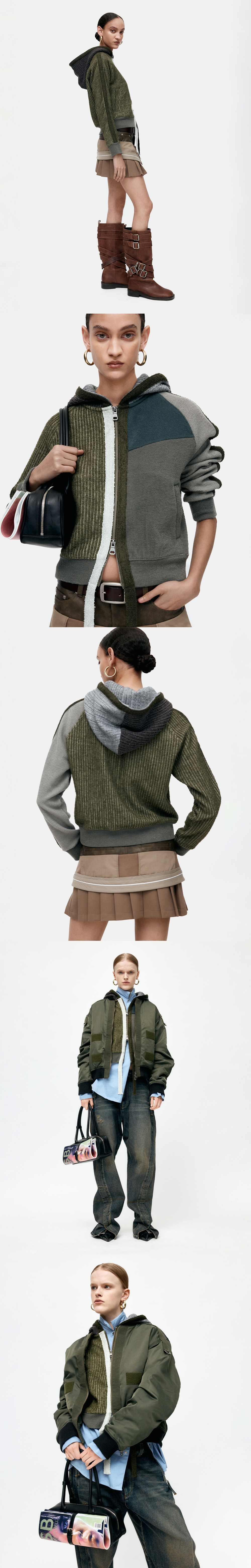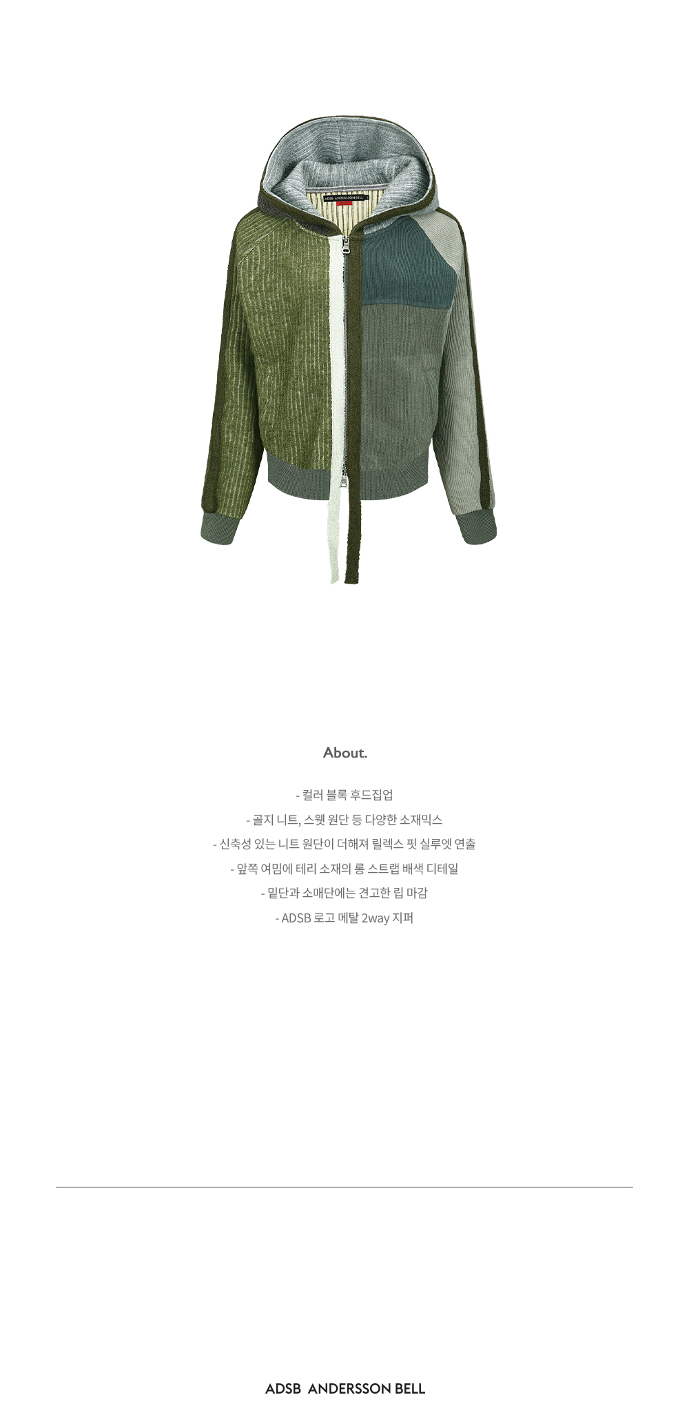 ADSB 앤더슨벨 컬러 블록 니트 후디 집업 그린