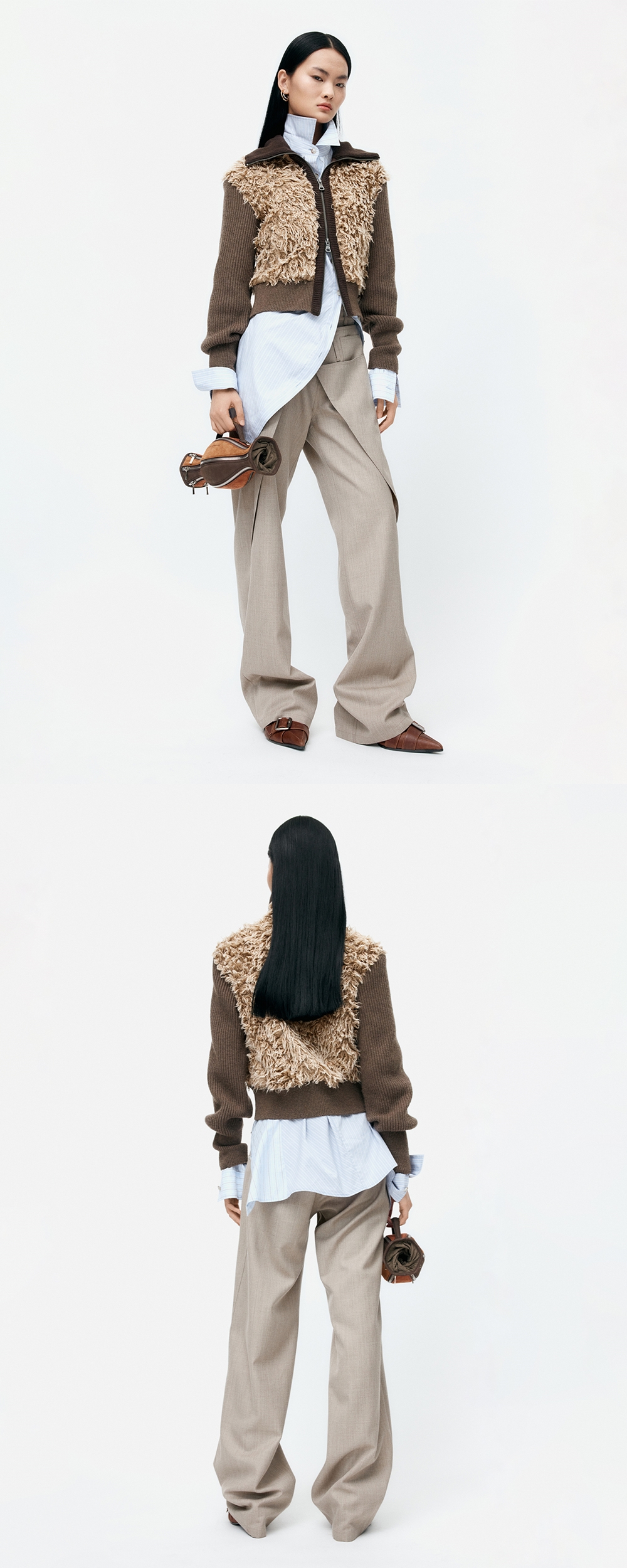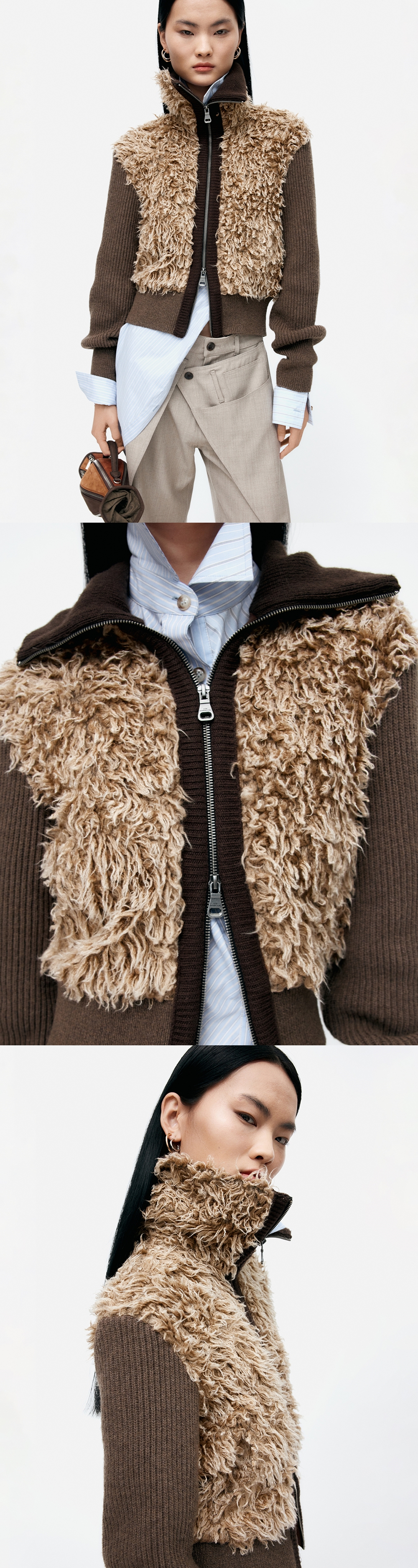 ADSB Andersson Bell Fur Combo Knit Top Beige
