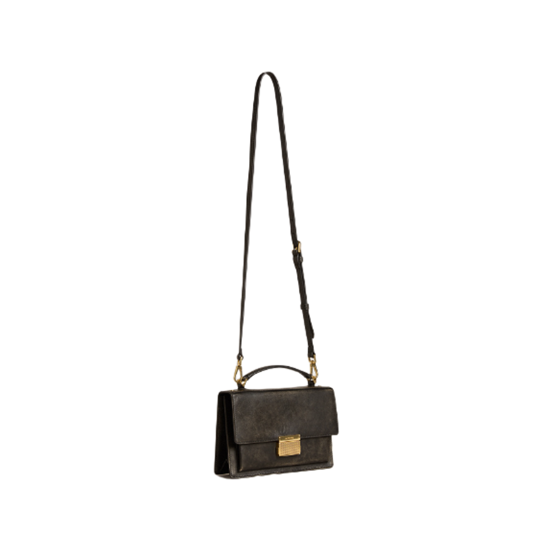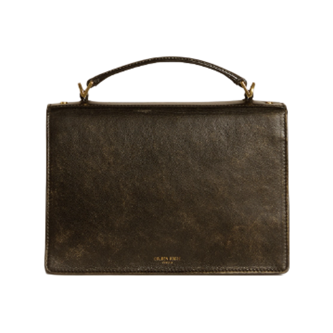 Golden Goose Venezia Bag in Distressed Leather with Gold Details Black
