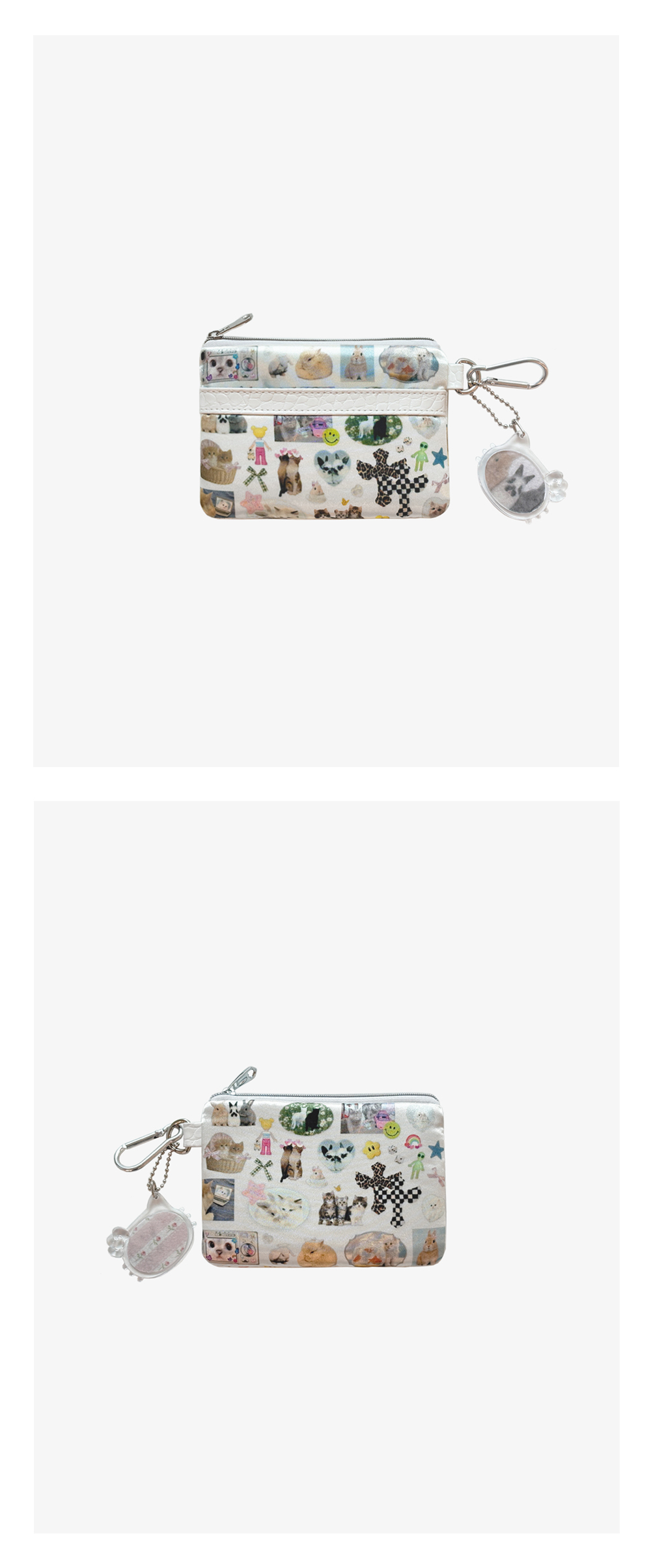 언스테디마켓 콜라쥬 미니월렛이 출시 되었습니다. 지갑 또는 파우치, 키링으로 활용 가능합니다. [One Size] 14cm x 10cm (1 out Pocket / 1 inner pocket) [Material] Poly & Cotton mixed. Vegan Leather. Metal. Made in Korea.