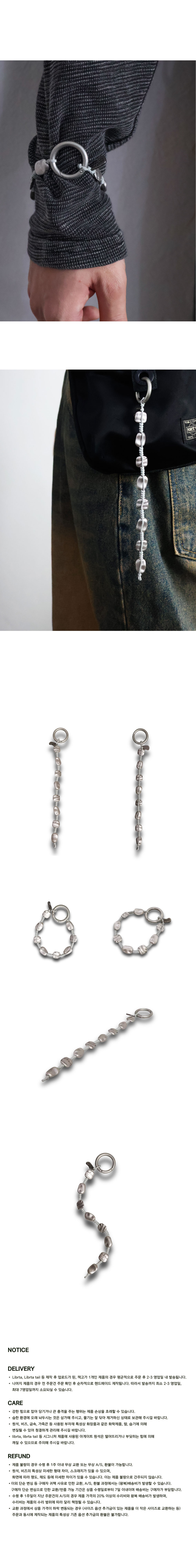 원석, 비즈, 금속, 가죽끈 등 사용된 부자재 특성상 화장품과 같은 화학제품, 땀, 습기에 의해 변질될 수 있어 청결하게 관리해 주시길 바랍니다.