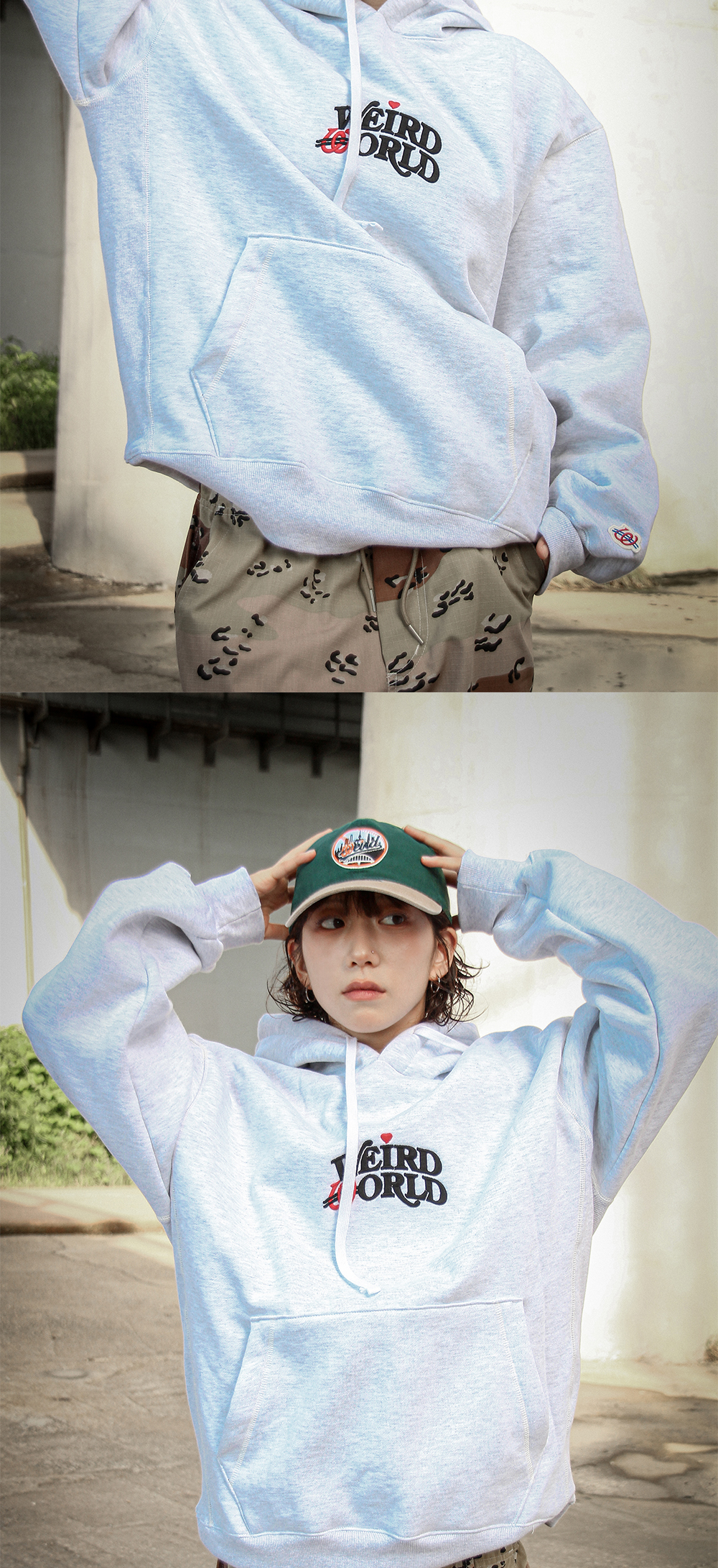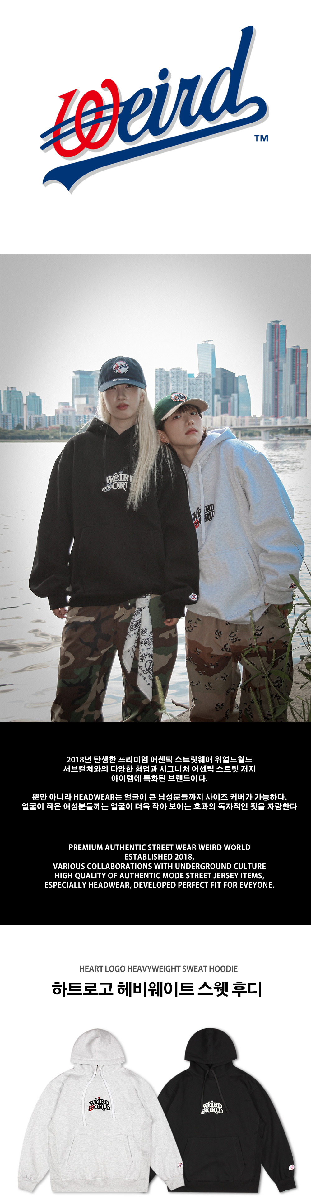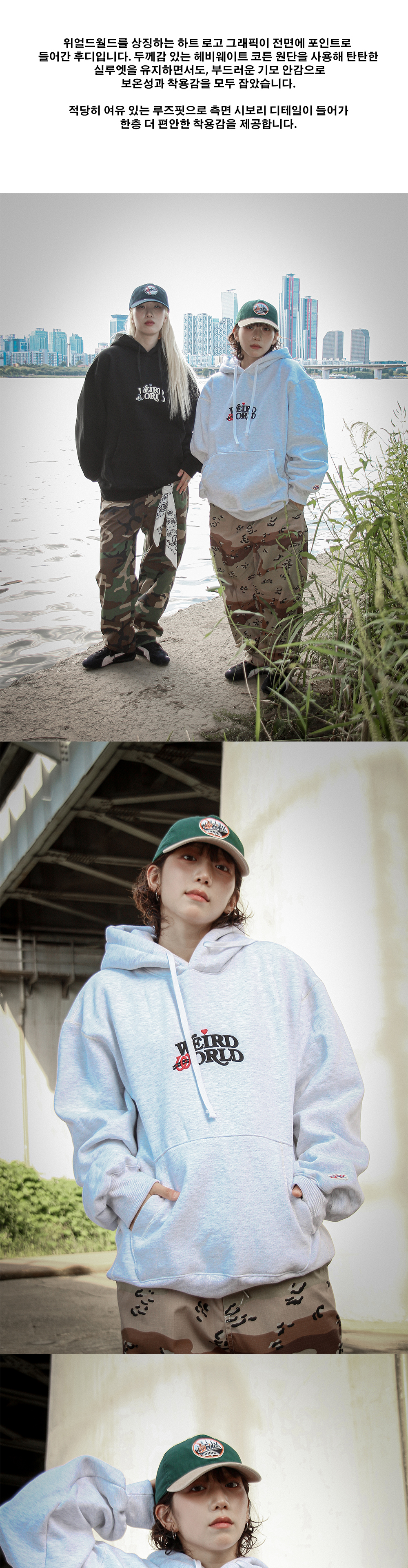 얼드월드 하트로고 헤비스웻 후디 멜란지