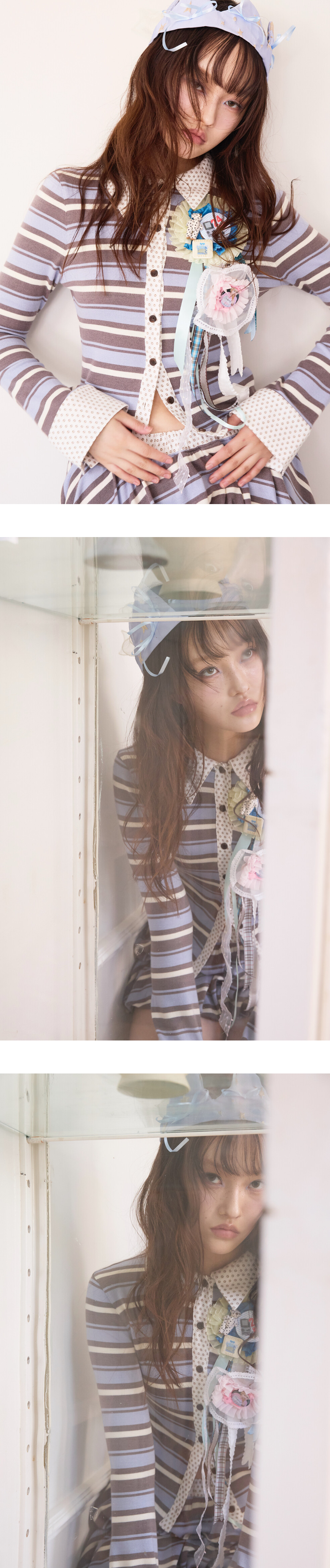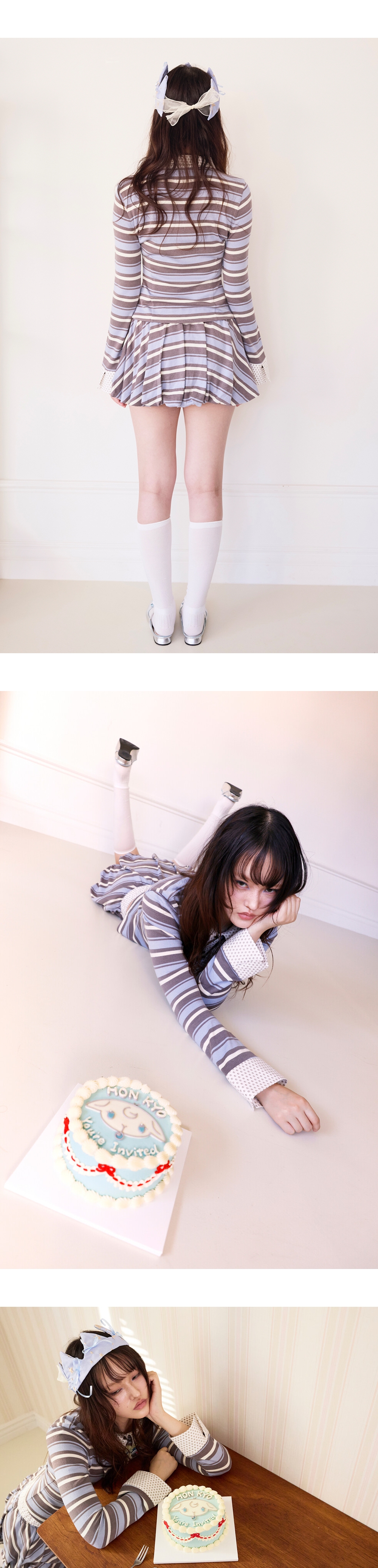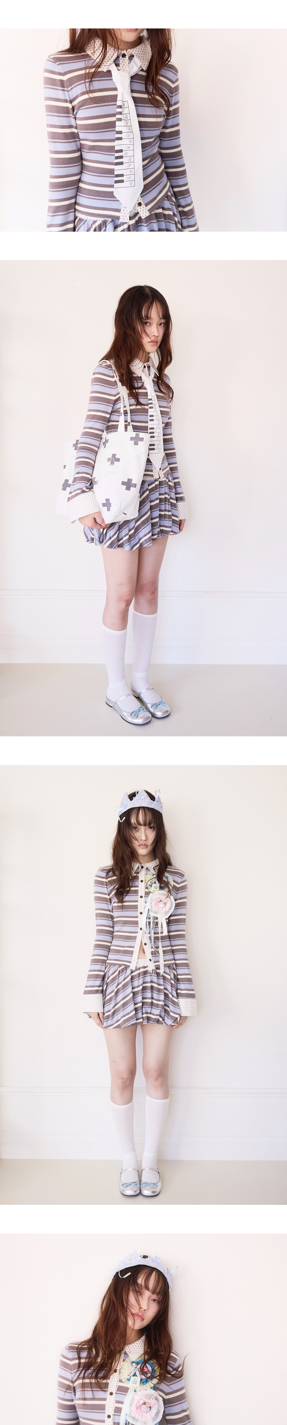 - 원단 2종 혼용 - 세미 크롭 기장 - 신축성 있는 니트 소재 원단 사용 - Paw Print Knit Balloon Skirt와 함께 착용 추천