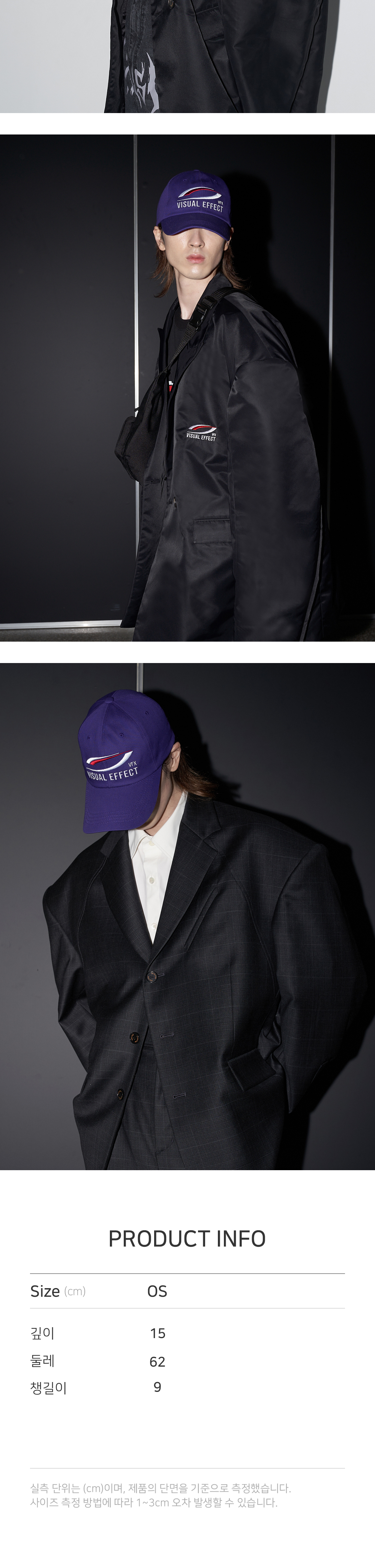 [PRODUCT INFORMATION] 제조국: 한국 소재: 코튼 100% -VFX 시즌 로고 자수 -뒷면 스트랩 슬로건 자수 -벨크로 탭 클로징 [Model Spec & Size] Man model is 181cm, and wearing a OS size