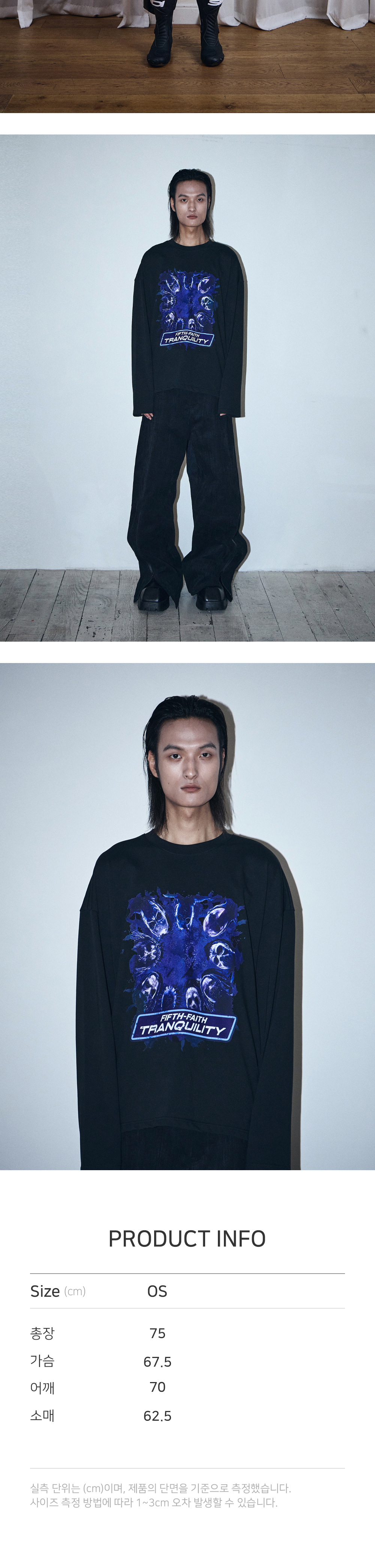[PRODUCT INFORMATION] 제조국: 한국 소재: 코튼 80%, 폴리에스터 20% -오버사이즈 실루엣 -실키 코튼 -앞면의 FIFTH-FAITH 프린팅 [Model Spec & Size] Man model is 185cm, and wearing a OS size
