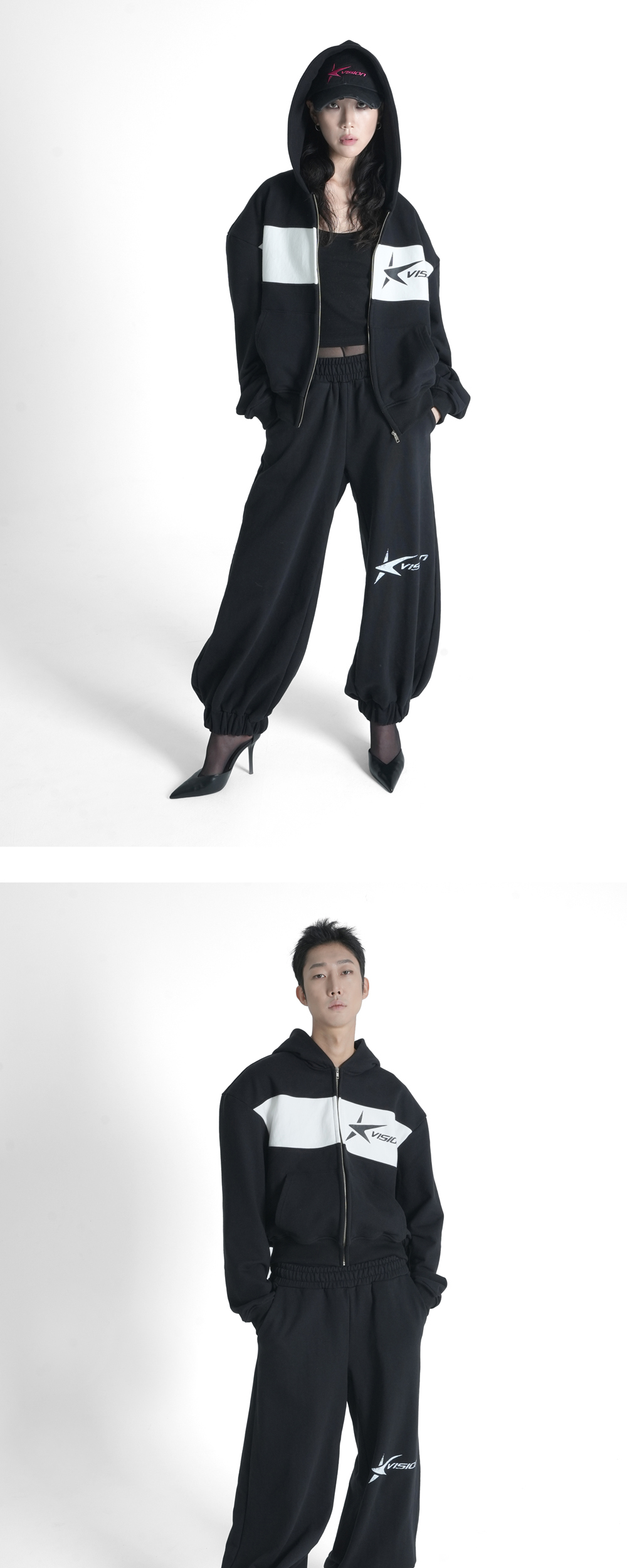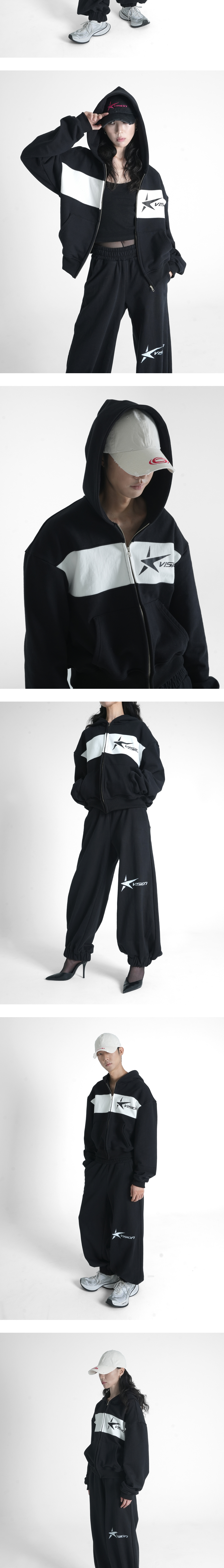 [PRODUCT INFORMATION] 제조국: 한국 소재: 코튼 90%, 폴리에스터 10% -세미 크롭 기장 -컬러 블록 디테일 -탈부착 가능한 어깨 패드 -스타로고 프린팅 -캥거루 포켓 [Model Spec & Size] Man model is 186cm, and wearing a OS size Woman model is 173cm, and wearing a OS size
