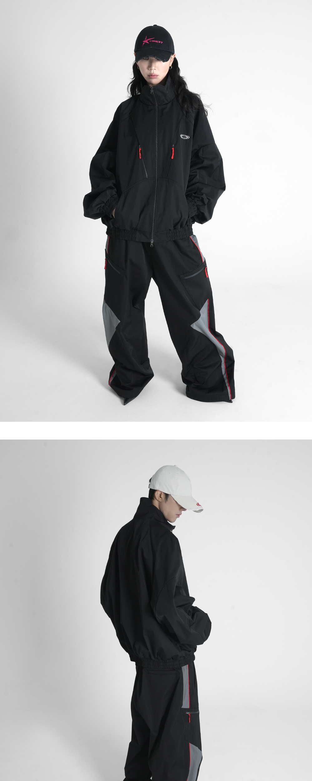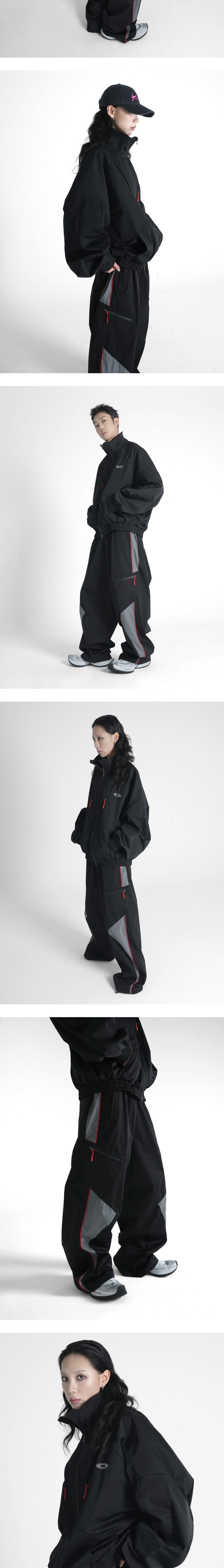 [PRODUCT INFORMATION] 제조국: 한국 소재: 폴리에스터 80%, 코튼 20 % 소재2: 나일론 100% -오버사이즈 실루엣 -콘트라스트 패널과 파이핑 라인 디테일 -두개의 워크 포켓 -두개의 방수 지퍼와 스포티 지퍼고리 -하드쉘 발수 원단 -허리 밴드와 사이즈 조절용 드로우 스트링 -뒷면 두개의 슬래쉬 포켓 [Model Spec & Size] Man model is 186cm, and wearing a 2 size Woman model is 173cm, and wearing a 2 size