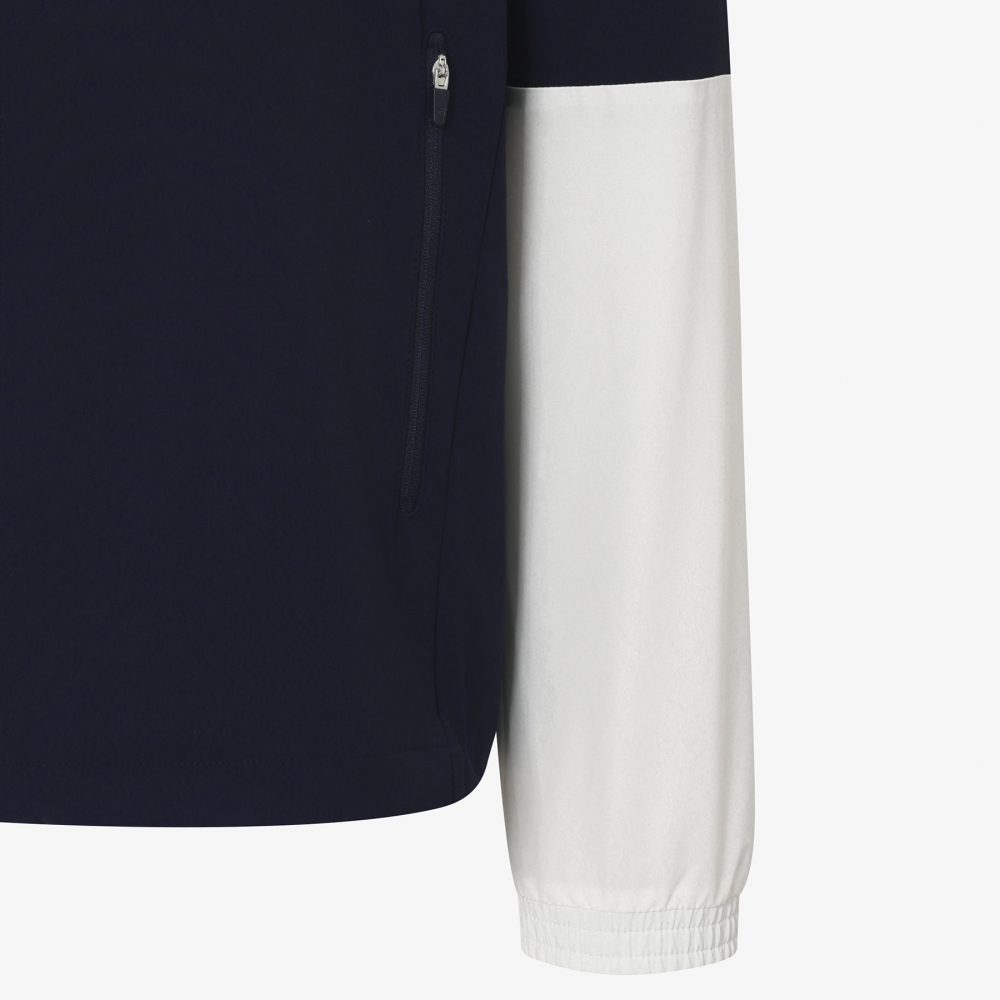 남성 스트레치 트로피패턴 바람막이입니다.4way 스트레치 기능을 갖춘 경량 나일론 스판 원단을 사용하여 어떠한 움직임에도 불편함 없이 자유로운 동작이 가능합니다. 또한, 생활 방수 기능을 갖추어 실용성을 더했습니다.겨드랑이와 사이드 패널에 트로피 패턴을 적용하여 서브와 테이크백 동작을 최적화했습니다. 이를 통해 장시간 플레이 시에도 팔과 어깨의 부담을 줄이고 편안한 움직임을 제공합니다.2way 지퍼가 적용된 풀집업 경량 바람막이로 가을부터 초겨울까지 다양하게 활용 가능합니다. 편안한 착용감과 실용적인 디자인으로 일상부터 운동까지 폭넓게 착용할 수 있습니다.