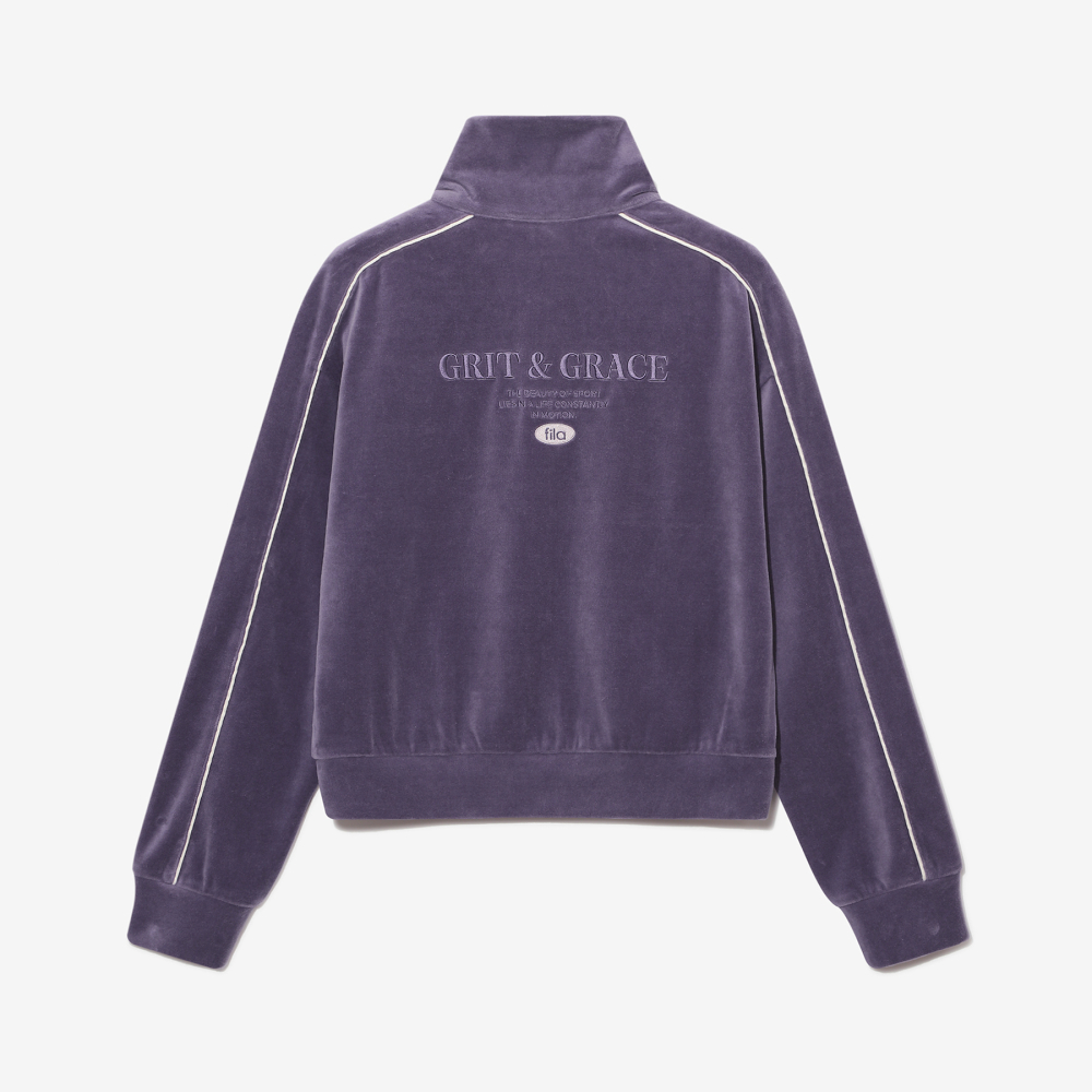 [6% 적립] FILA Velvet Line Point Stand Neck Zip-Up Dark Viol