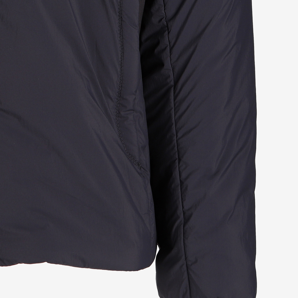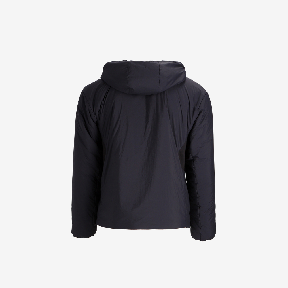 우븐 스트레치 후드 패딩입니다.경량 나일론 소재를 사용하여 가벼우면서도 뛰어난 방풍 효과를 제공합니다. 립스탑 조직을 적용하여 얇지만 내구성이 뛰어나 다양한 야외 활동 시 편안하게 착용할 수 있습니다.겨드랑이 부분에 신축성이 우수한 져지 소재를 하이브리드로 적용하여 러닝, 테니스 등 동계 스포츠 활동 및 야외활동시 팔의 움직임을 편안하게 하여 최상의 퍼포먼스를 지원합니다.폴리에스터 패딩 충전재를 사용하여 땀이나 수분으로 인한 냄새 발생을 방지하며, 자주 세탁하여도 변형 없이 착용할 수 있어 퍼포먼스 의류로 매우 적합합니다.