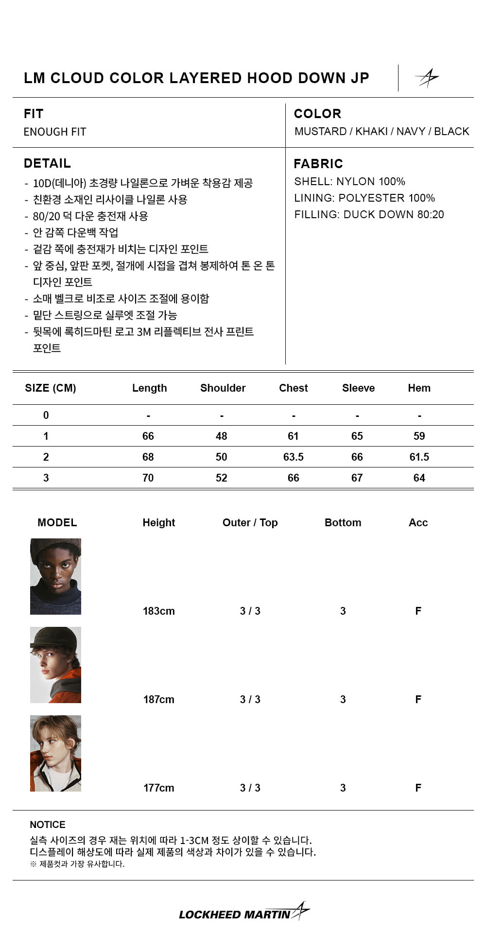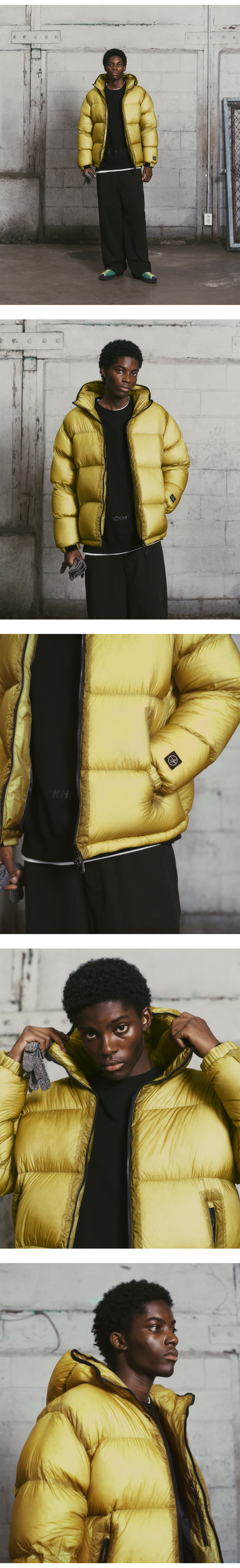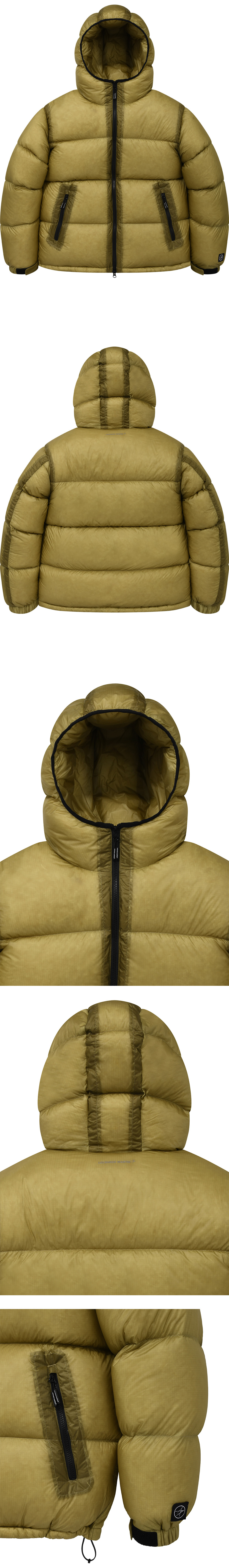 록히드마틴 클라우드 컬러 레이어드 후드 다운 점퍼 머스타드