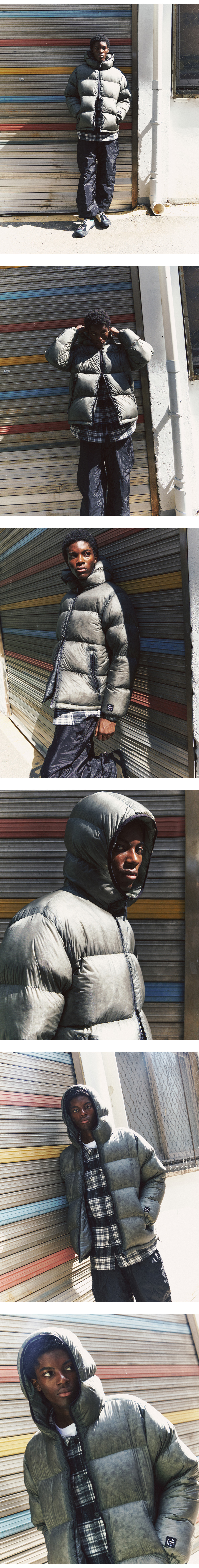 록히드마틴 클라우드 컬러 레이어드 후드 다운 점퍼 카키