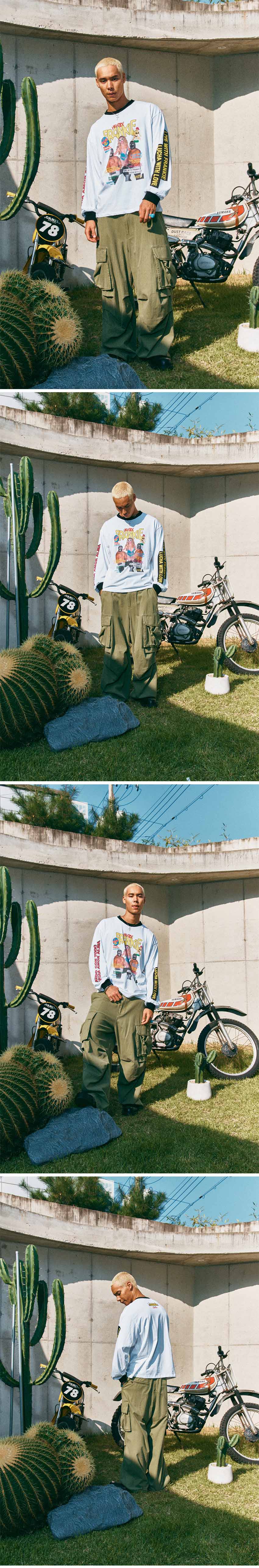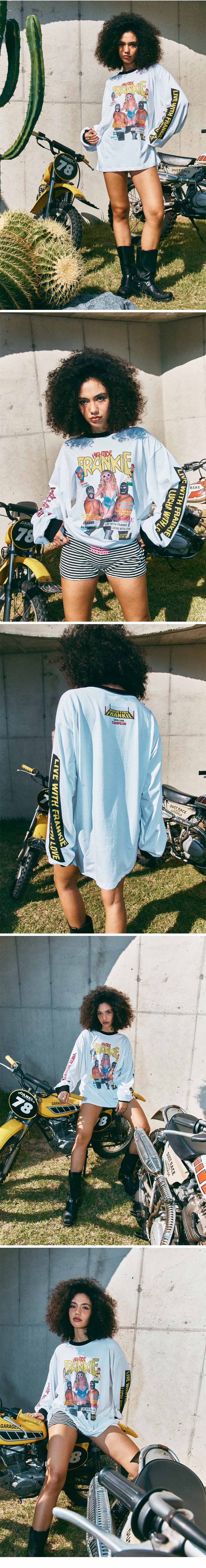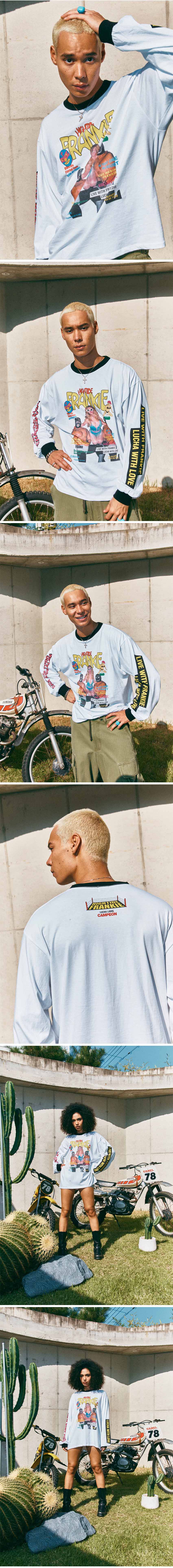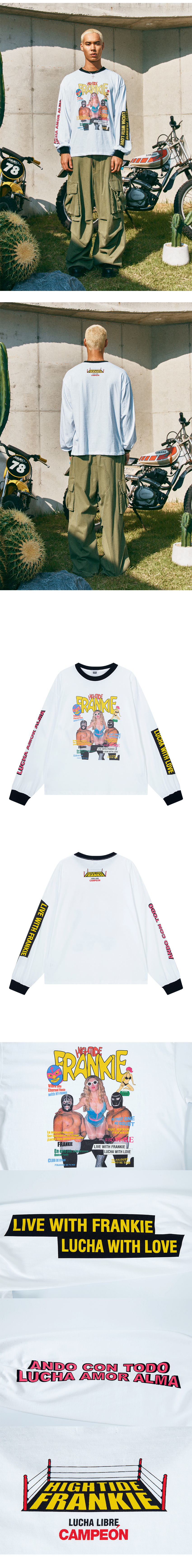 Akira : 182cm 69kg Koky : 167cm 53.5kg 프랭키가 애정하는 류차 리브레 & 링거 티셔츠 시리즈의 세번째 제품 입니다 앞 부분 중앙에 디지털 전사로 표현한 그래픽은 1980년대~1990년대 초반 멕시코 의 레슬러 전문 잡지 Maskaras y Bikinis 를 차용하여 오마쥬한 아트웍을 완성 하였습니다 여유있는 루즈핏 제품으로 텐타 덤블과 바이오 워싱이 작업된 소재로 제작 하여 세탁후 줄어듬 현상을 최소화 하였습니다 어깨 부분 이음선은 체인스티치 기법으로 마감 되었습니다 -혼용률- 20수 면 100% / 바이오 워싱 -주의- 드라이 권장 옷을 뒤집어 미지근한 물에 세탁 표백제나 강력한 세제 사용 금지 건조기 사용 금지 프린트 부분 다림질 금지 Made in KOREA