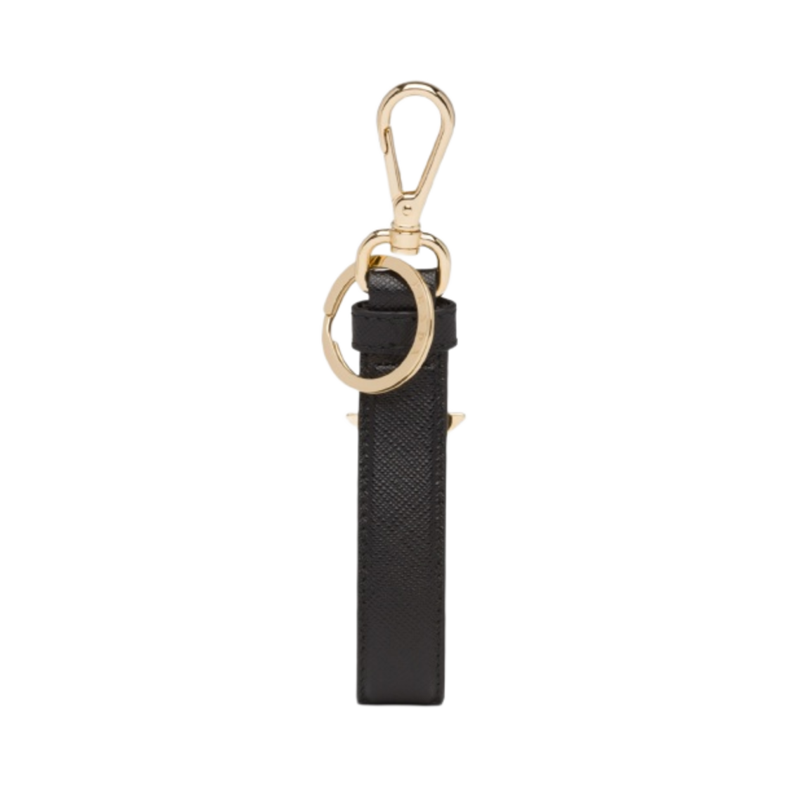 Prada Saffiano Leather Triangle Logo Keyring Black Gold