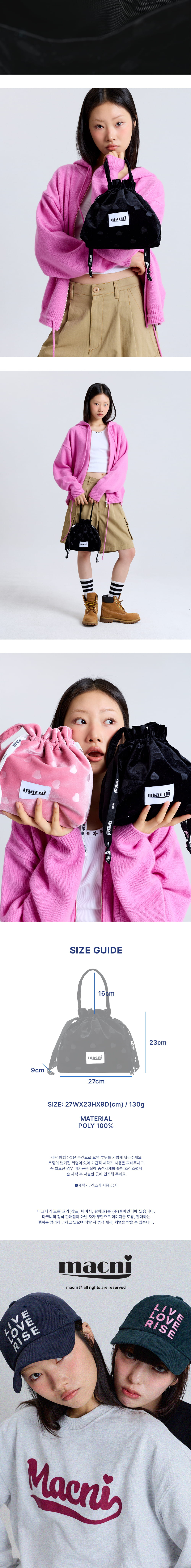 마크니 하트 벨벳 스트링 파우치백 블랙