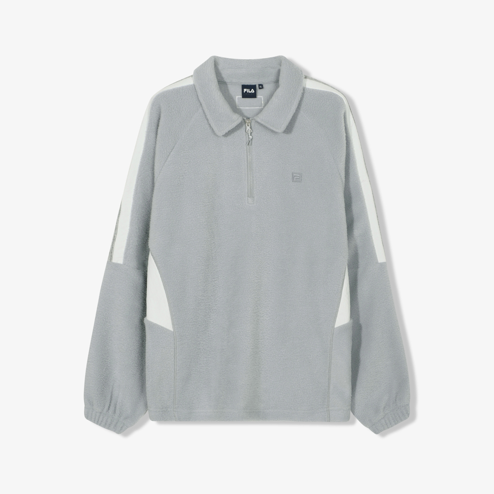 얇은 플리스 소재로 제작되어 가볍고 부드러운 착용감을 자랑합니다. 플리스의 특성 덕분에 보온성이 뛰어나면서도 과하지 않게 편안하게 입을 수 있습니다. 피부에 닿는 느낌이 부드럽고, 일상에서 자연스럽게 착용하기 좋은 아이템입니다. 카라 디테일이 더해져 맨투맨 특유의 캐주얼함에 단정하고 클래식한 무드를 더했습니다. 반집업 형태로 입고 벗기 용이하며, 더욱 캐주얼하고 편안하게 착용 가능합니다. 동일 소재의 플리스 팬츠(FS254FP01X002)와 셋업으로 코디하여 나만의 룩을 완성할 수 있습니다.