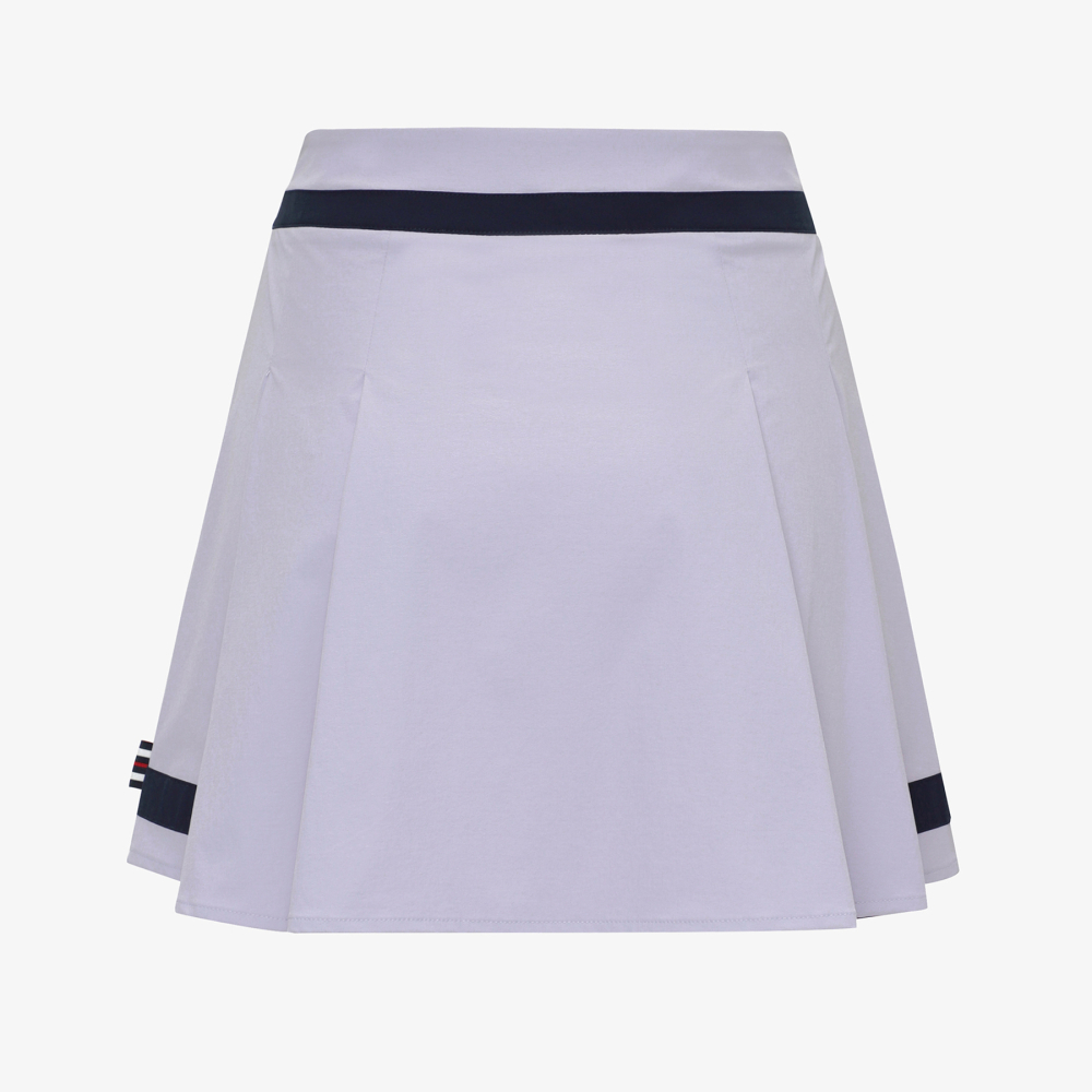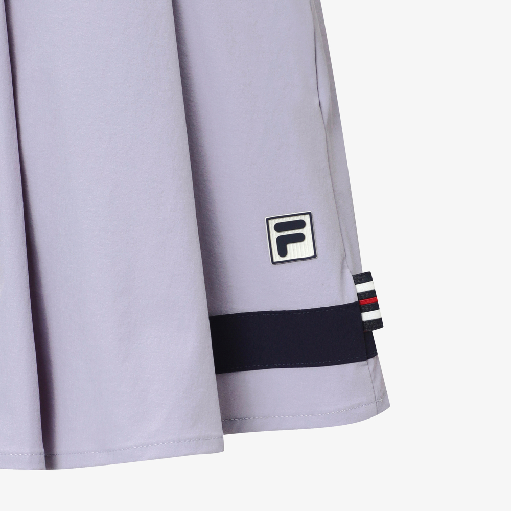 라인 배색 플리츠 스커트입니다.4way 스트레치가 되는 경량 나일론 스판 원단으로 어떠한 움직임에도 불편함 없이 편안한 동작을 완성할 수 있습니다. 생활 방수가 가능합니다.휠라의 아이코닉 F 박스 와펜과 함께 시그니처 디테일인 7 스트라이프 테이프가 슬릿을 따라 적용되어 모던하면서도 액티브한 무브먼트의 감각을 살린 디자인입니다. 무릎 위로 경쾌하게 올라오는 4부 기장감으로 자유로운 움직임과 세련된 착장을 동시에 제공합니다.