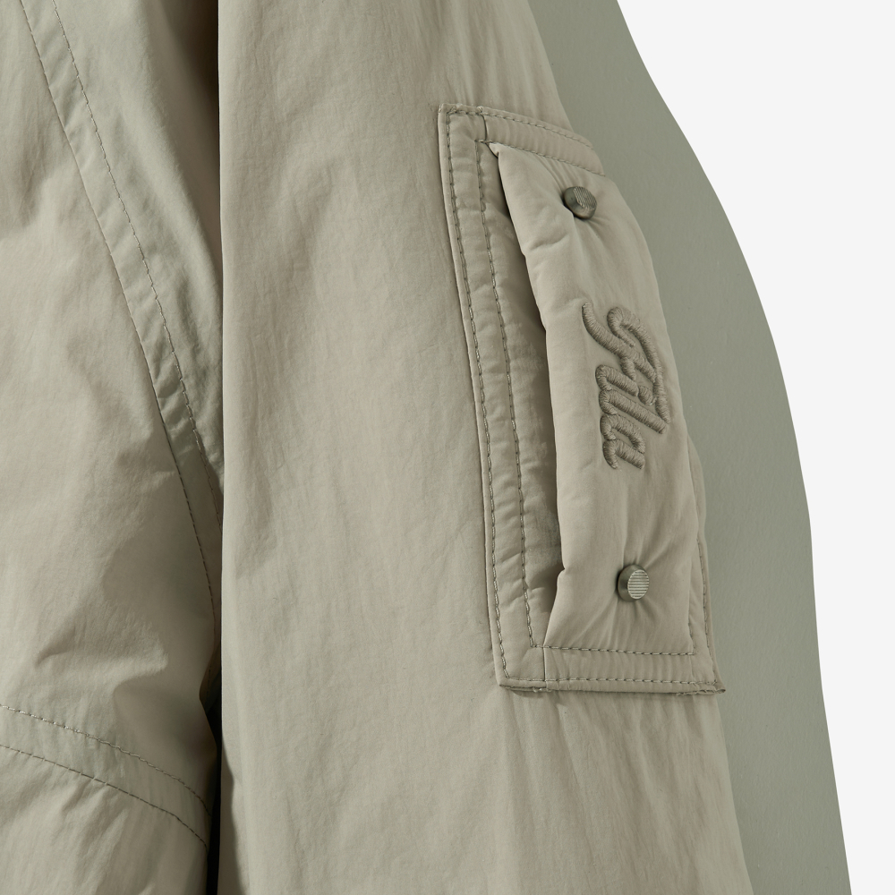 트렌디한 오버핏 실루엣과 하이넥 디자인이 돋보이는 하이넥 패딩 자켓입니다. 밀리터리 점퍼 스타일을 현대적으로 재해석하여 캐주얼한 무드를 연출할 수 있습니다.여성의 체형에 가장 예쁘게 맞는 오버핏 실루엣을 개발하였습니다. 부해 보이지 않는 오버핏 실루엣으로 겨울철 두꺼운 이너를 레이어드해도 부담없이 착용할 수 있습니다.쌀쌀해지는 계절에 착용하기 좋은 두께감의 패딩 자켓입니다. 간절기 시즌에는 아우터 단독으로, 윈터 시즌에는 두꺼운 아우터 안에 미들레이어로 착용할 수 있어 F/W 시즌 내내 활용도가 높습니다.