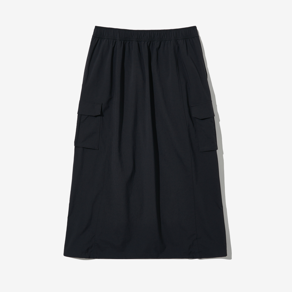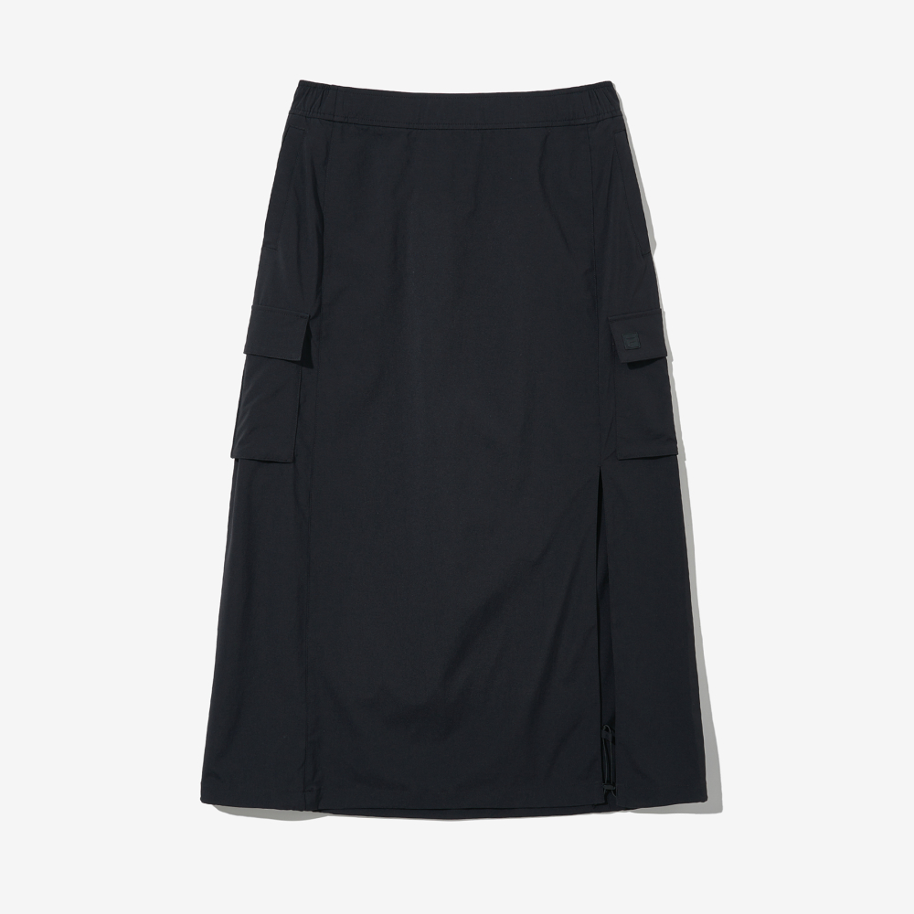 발목까지 오는 맥시한 기장감에 밑단 트임이 있어 트렌디한 아웃핏을 연출해줍니다. 걸을 때 겹침 부분이 벌어지지 않도록 설계하여 스타일은 물론 활동성까지 겸비한 디자인입니다.내추럴하고 캐주얼한 느낌의 나일론 스판 혼방 소재를 사용하였습니다. 구김이 적고 몸에 달라붙지 않는 청량한 소재감이 특징이며 스판 원사를 더해 더욱 편안한 착용감을 제공합니다. 형태 안정성이 우수하여 세탁 시 변형이 적고 오랫동안 새 것처럼 입을 수 있습니다.양 사이드의 플랩 포켓 디테일이 캐주얼한 무드를 연출하며, 간편하게 소지품을 보관할 수 있어 실용적입니다.