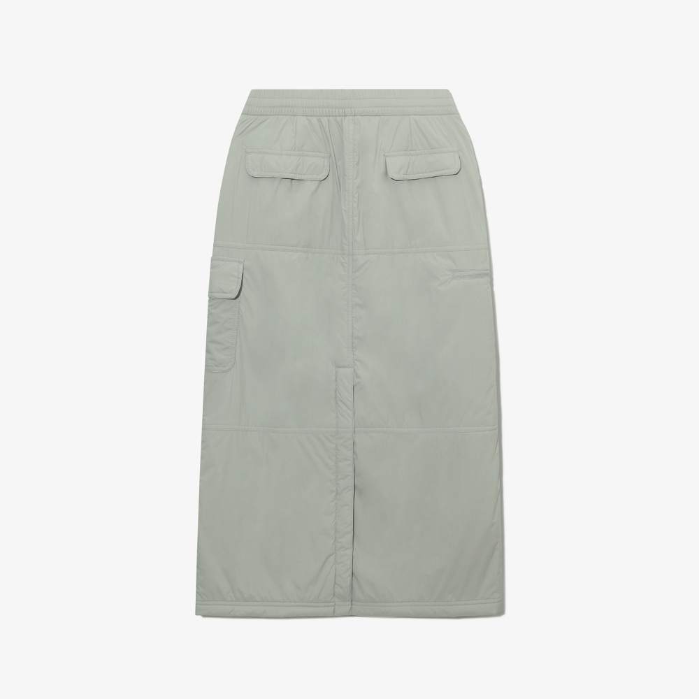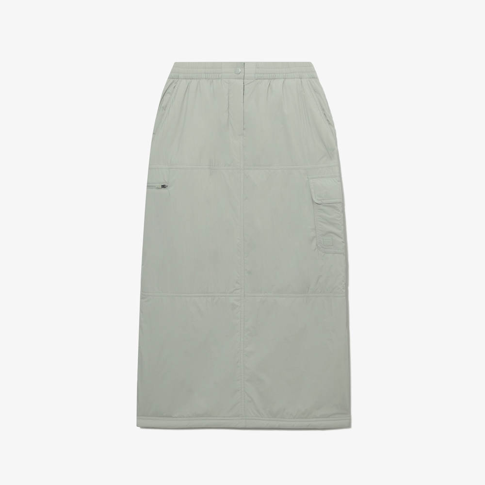 겨울철에도 따뜻하고 스타일리시하게 착용할 수 있는 패딩 스커트입니다. 가벼운 패딩 충전재를 사용하여 따뜻하면서도 바디 라인을 슬림하게 연출할 수 있습니다. 허리부터 자연스럽게 떨어지는 H라인 스커트로, 가로 절개 포인트가 더해져 트렌디한 무드를 연출합니다. 사이드에 실용적인 카고 포켓이 적용되어 디자인 포인트가 되어줄 뿐 아니라 수납력 또한 갖추었습니다.허리 부분 내장된 스트링과 밴딩 처리로 체형에 맞게 사이즈 조절이 용이합니다. 또한 활동성을 위해 슬릿 디테일을 더해 편안한 착용감을 제공합니다.