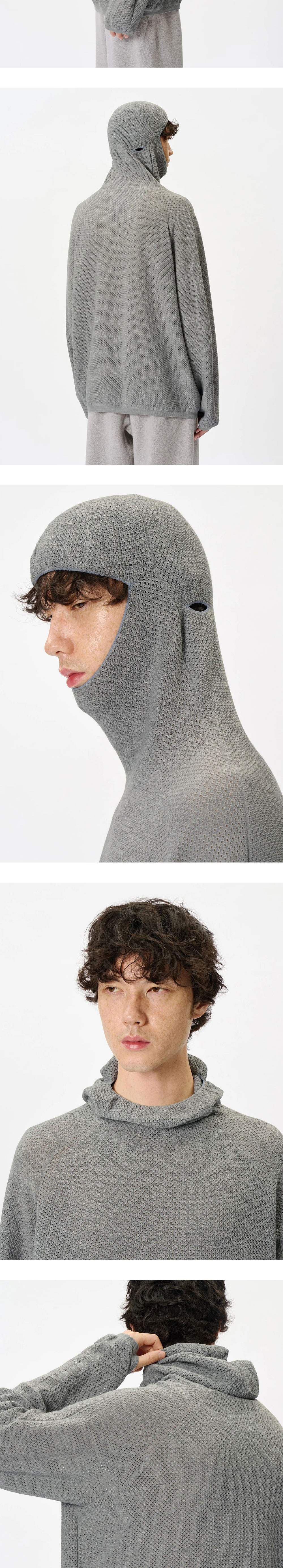 골드윈 퍼포레이티드 홀가먼트 니트 탑 징크 그레이입니다. - 바라클라바 스타일의 니트후드 - 레귤러 핏 실루엣 - 세밀한 펀칭 구조 - 소매 워머홀 - 무봉제 Wholegarment® 테크놀로지로 편안한 착용감 - 울과 폴리에스터 혼방 원사로 따뜻하면서도 내구성이 뛰어남