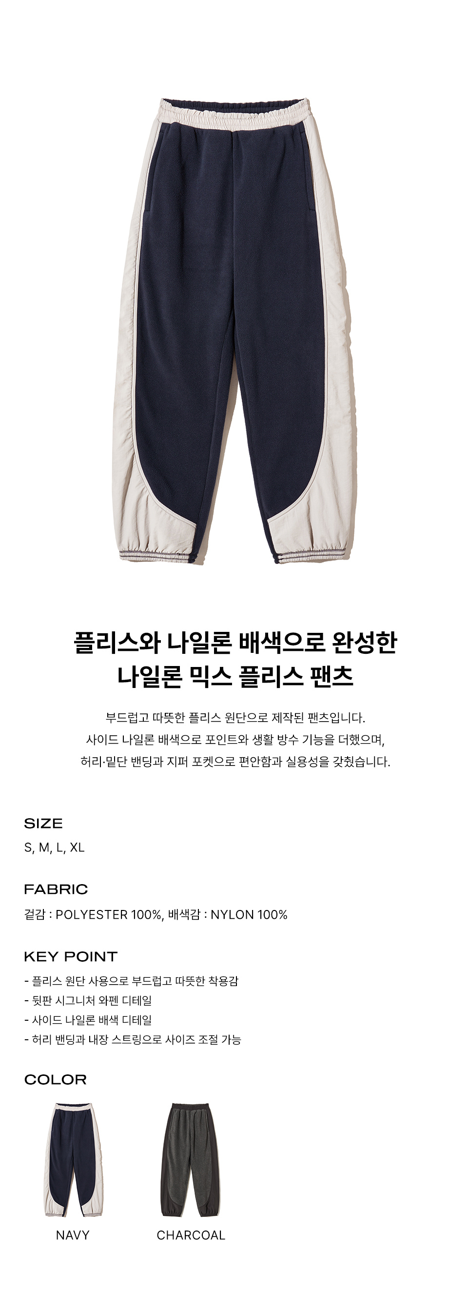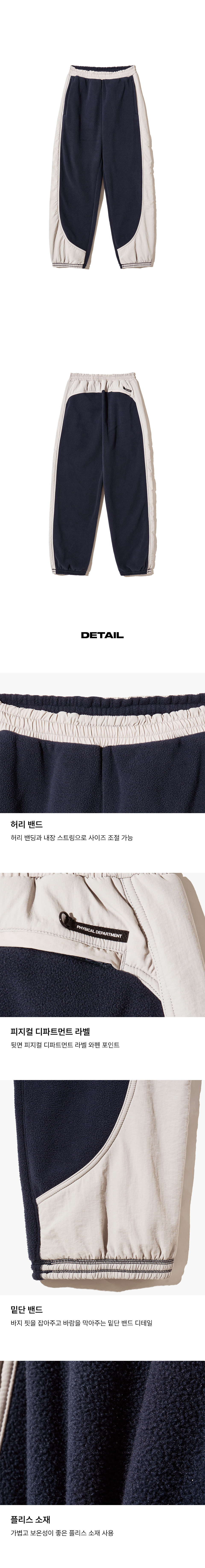 피지컬 디파트먼트 나일론 믹스 플리스 팬츠 네이비