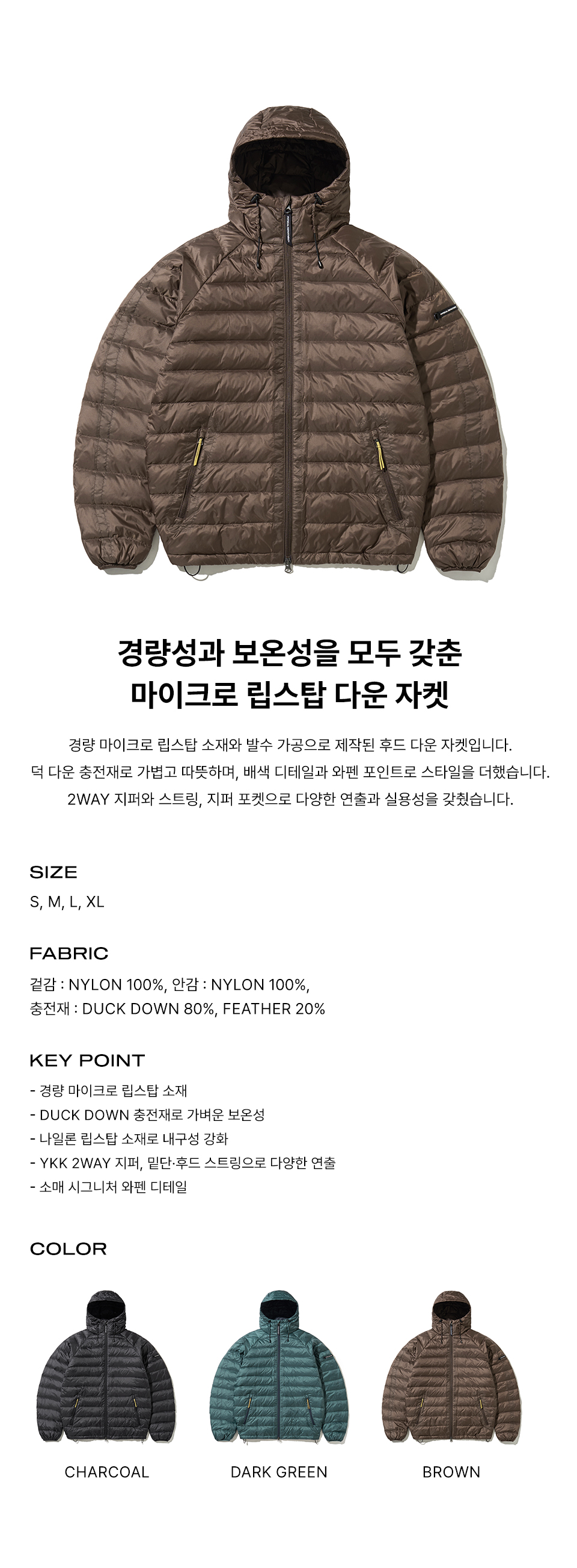 피지컬 디파트먼트 하이크 라이트 웨이트 다운 자켓 브라운