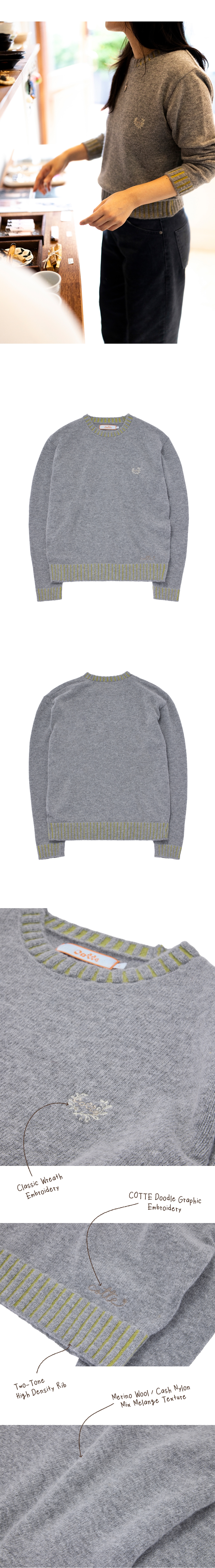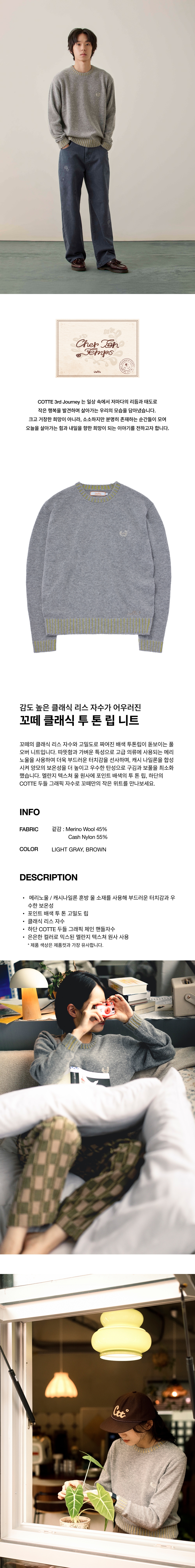 꼬떼 클래식 투 톤 립 니트 라이트 그레이