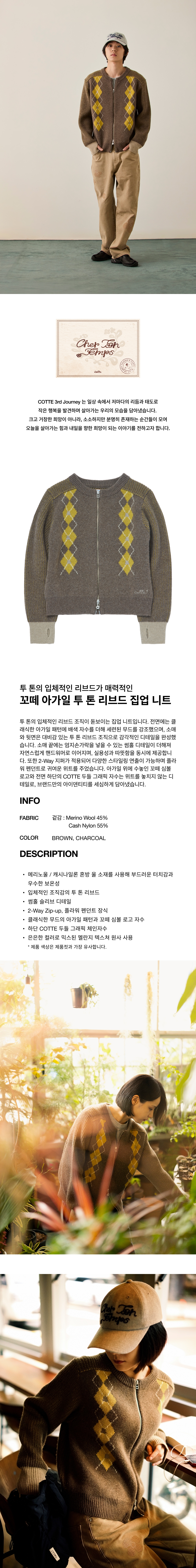 꼬떼 아가일 투 톤 리브드 집업 니트 브라운