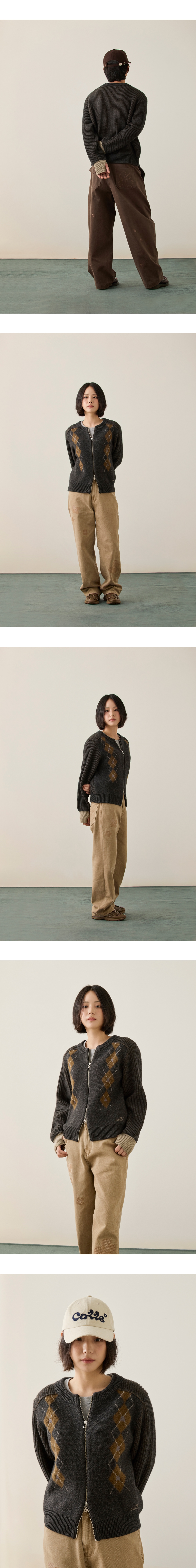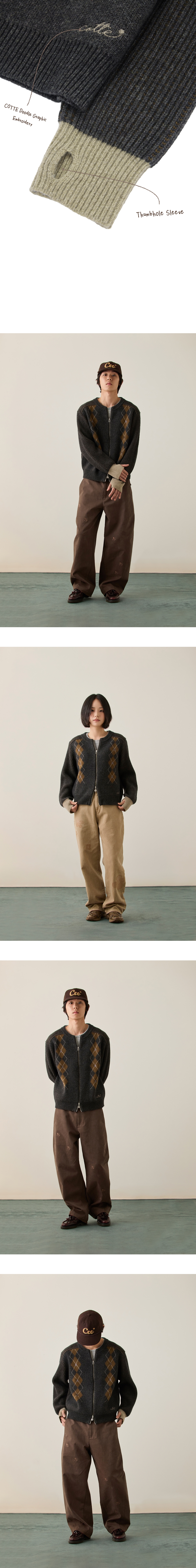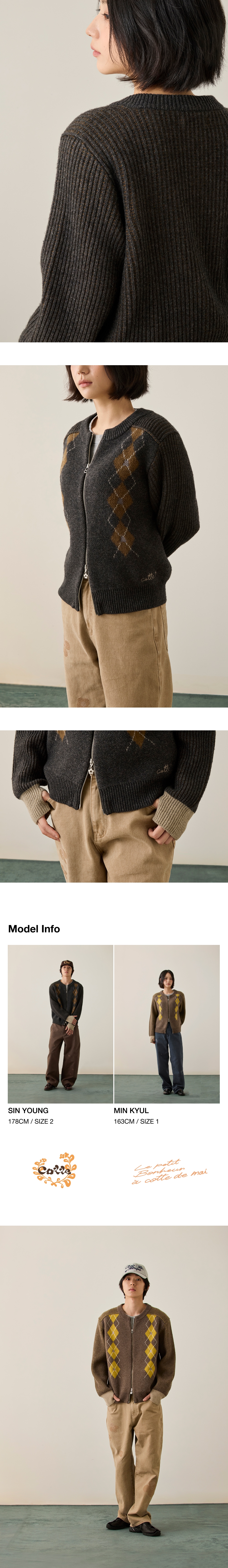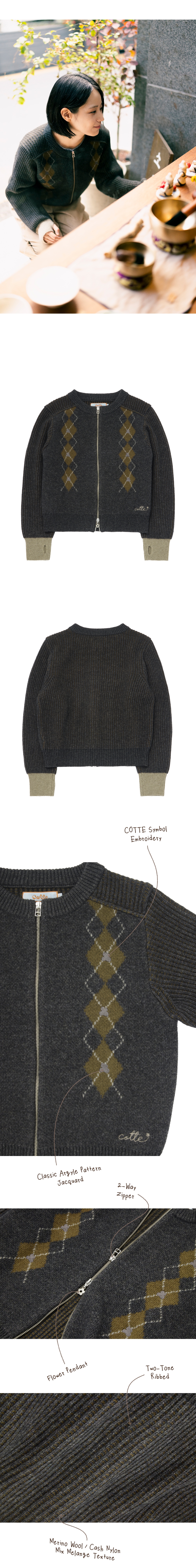COTTE Argyle Twotone Ribbed Zipup Knit Charcoal
