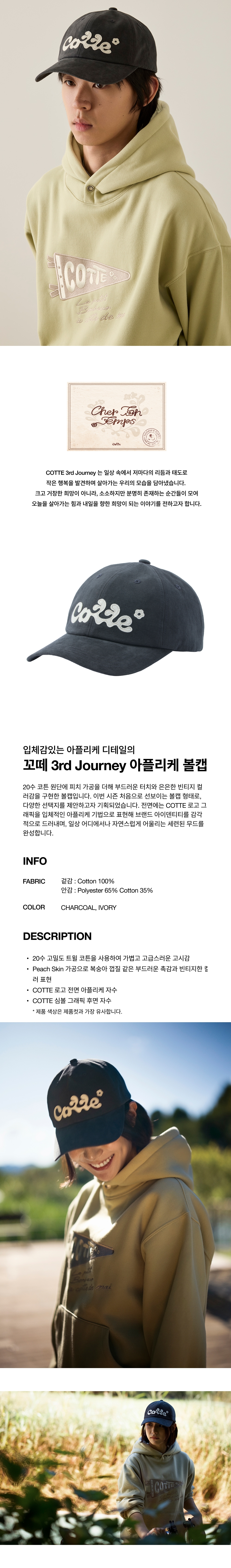 꼬떼 3rd 저니 아플리케 볼캡 차콜