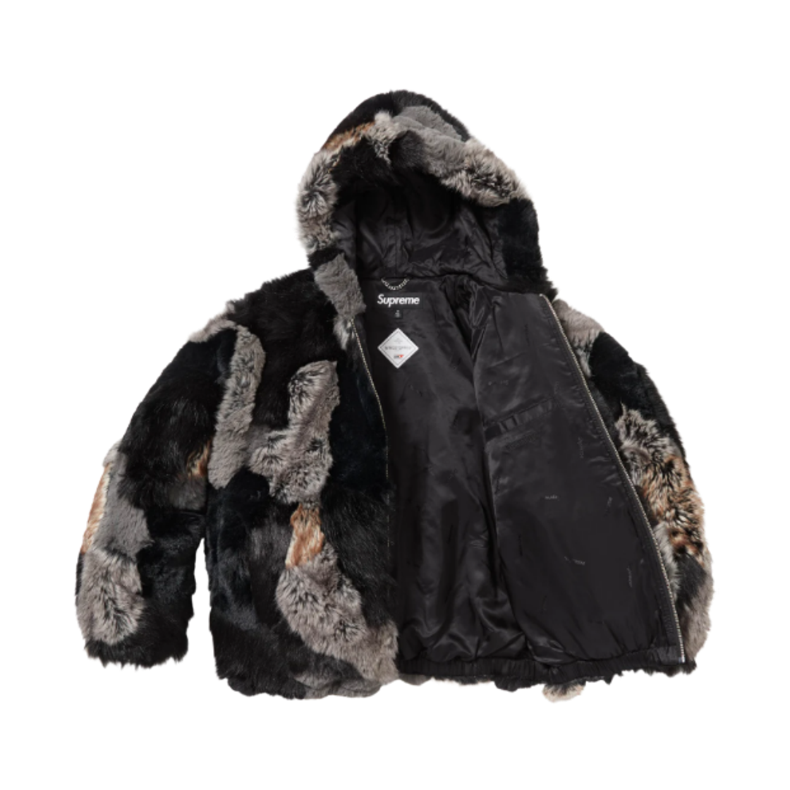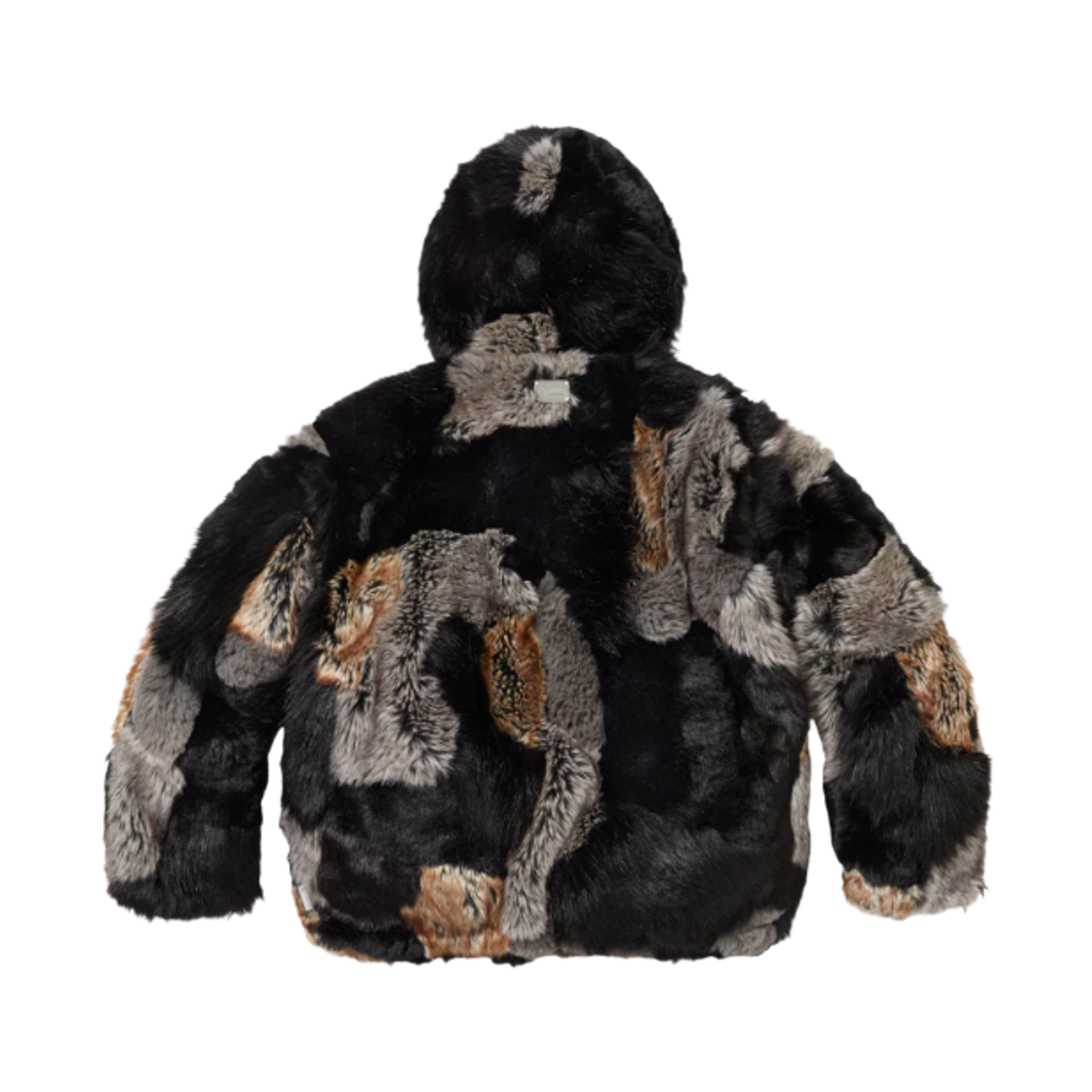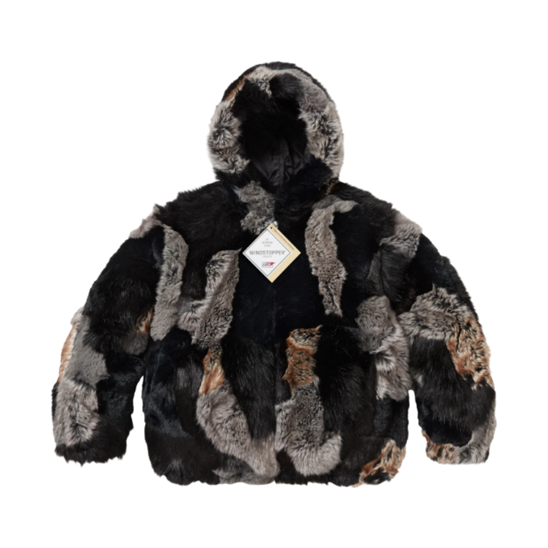 Supreme Patchwork Windstopper Hooded Faux Fur Jacket Black - 25FW