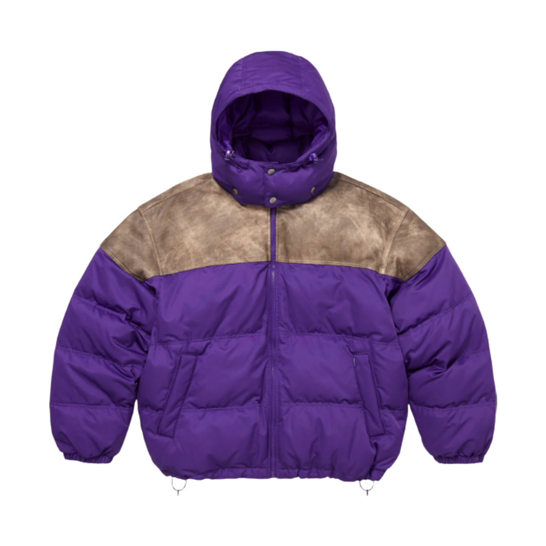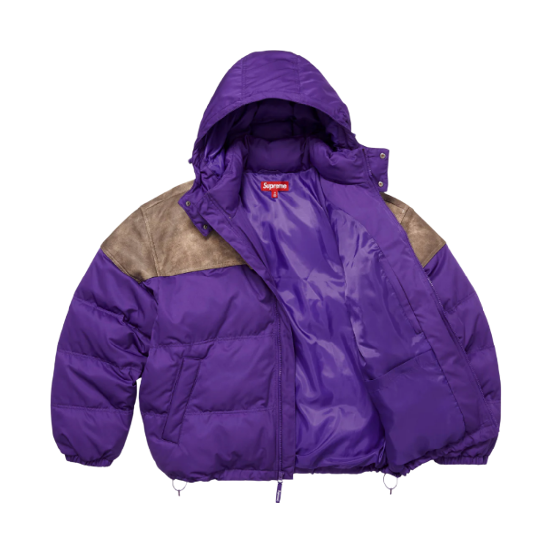 Supreme Leather Yoke Puffer Jacket Purple - 25FW