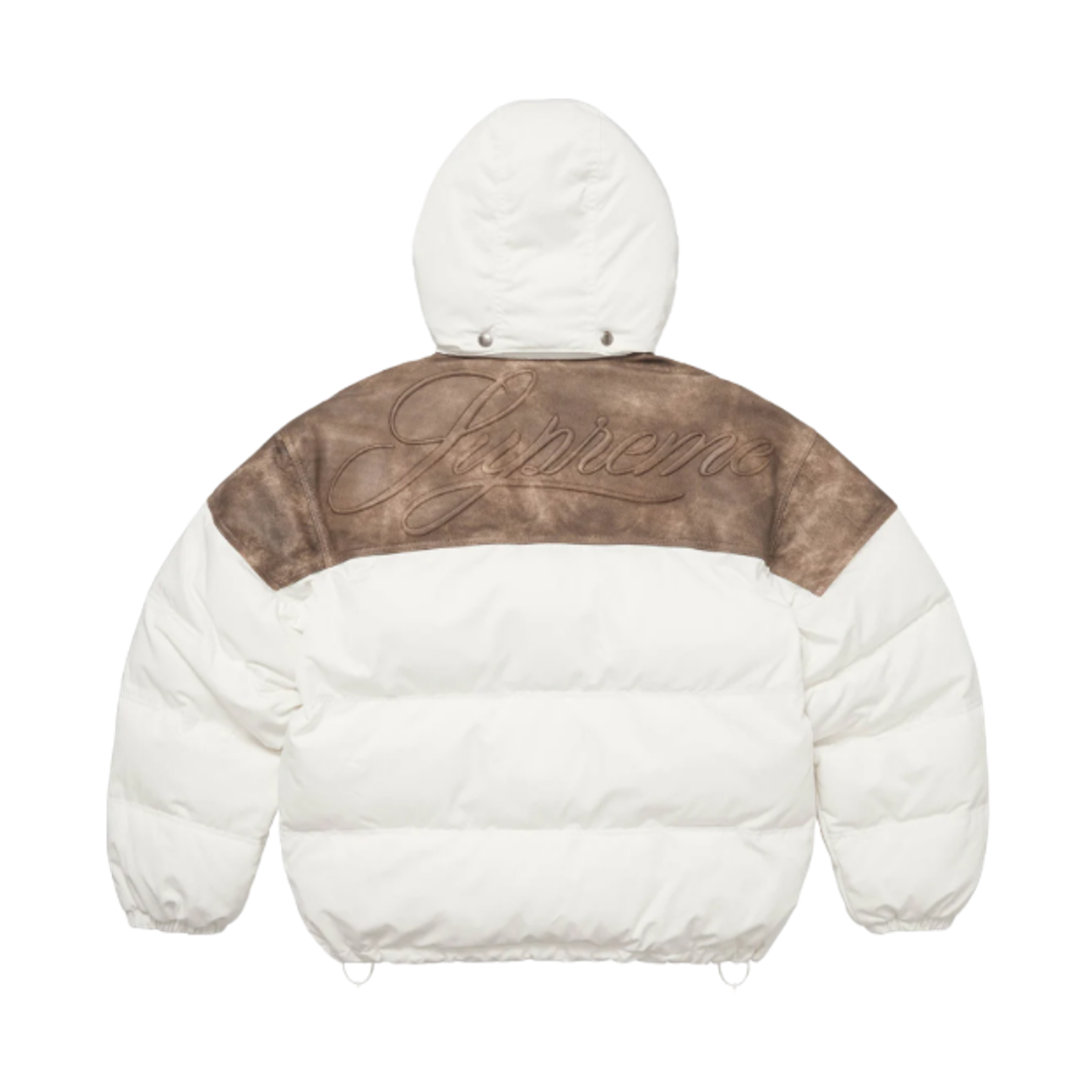 Supreme Leather Yoke Puffer Jacket White - 25FW