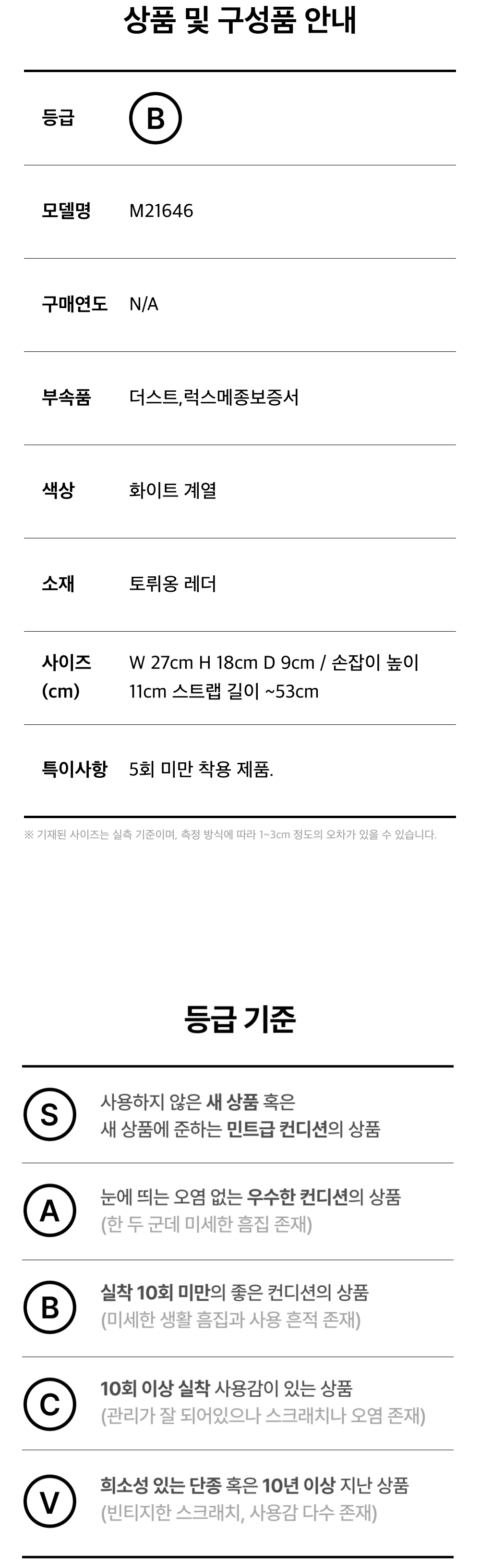 루이비통 M21646 23FW 화이트 토뤼옹 카퓌신 BB 토트백, 스트랩