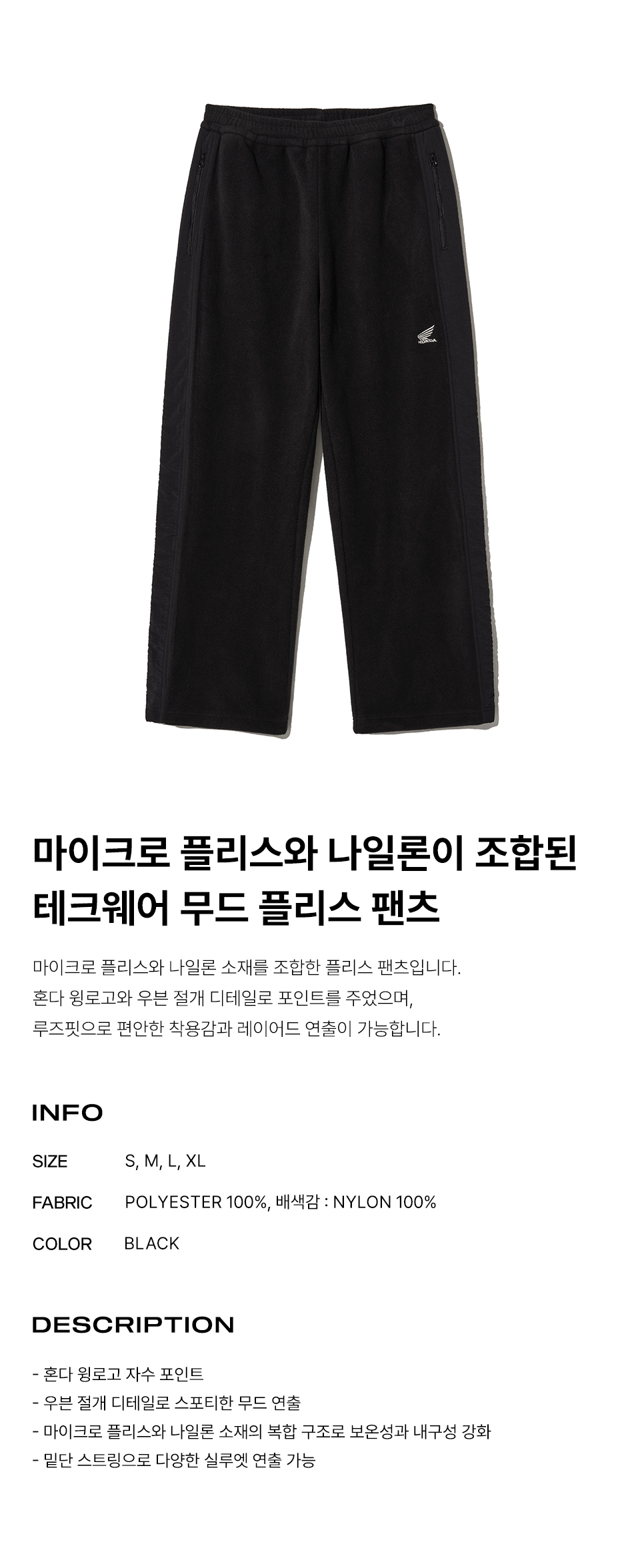 혼다 H-Tech 컬러 블록 플리스 팬츠 블랙