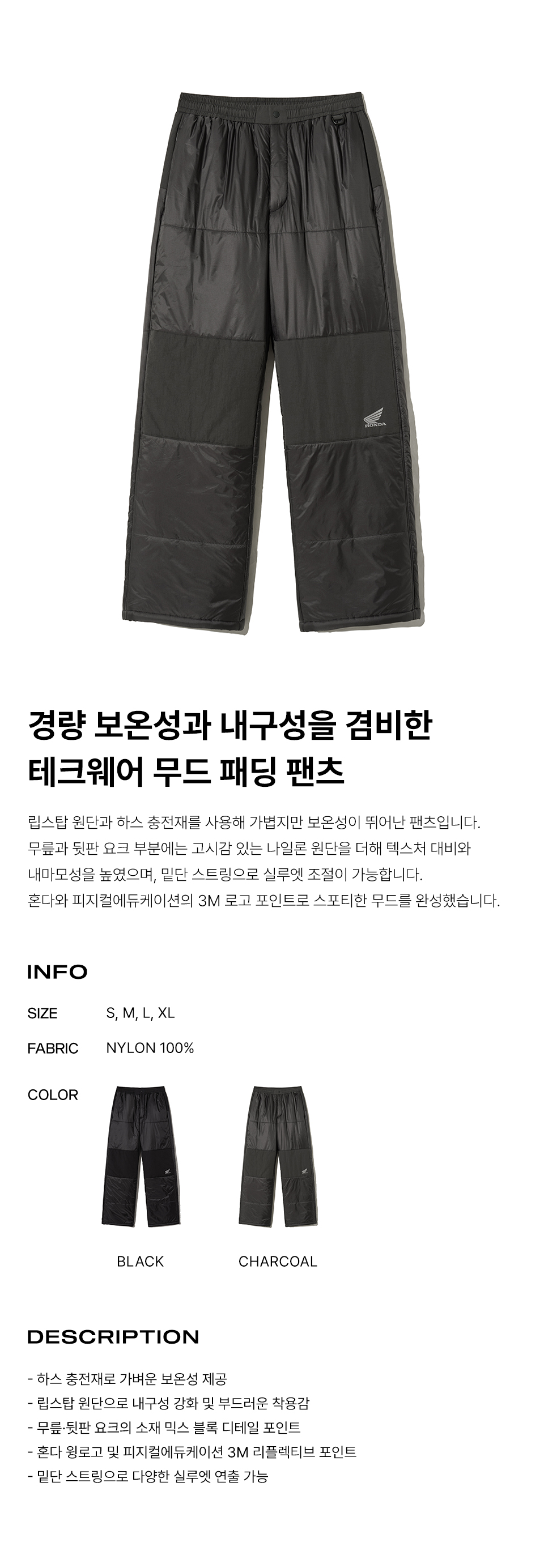 혼다 H-Tech 패커블 패딩 팬츠 차콜