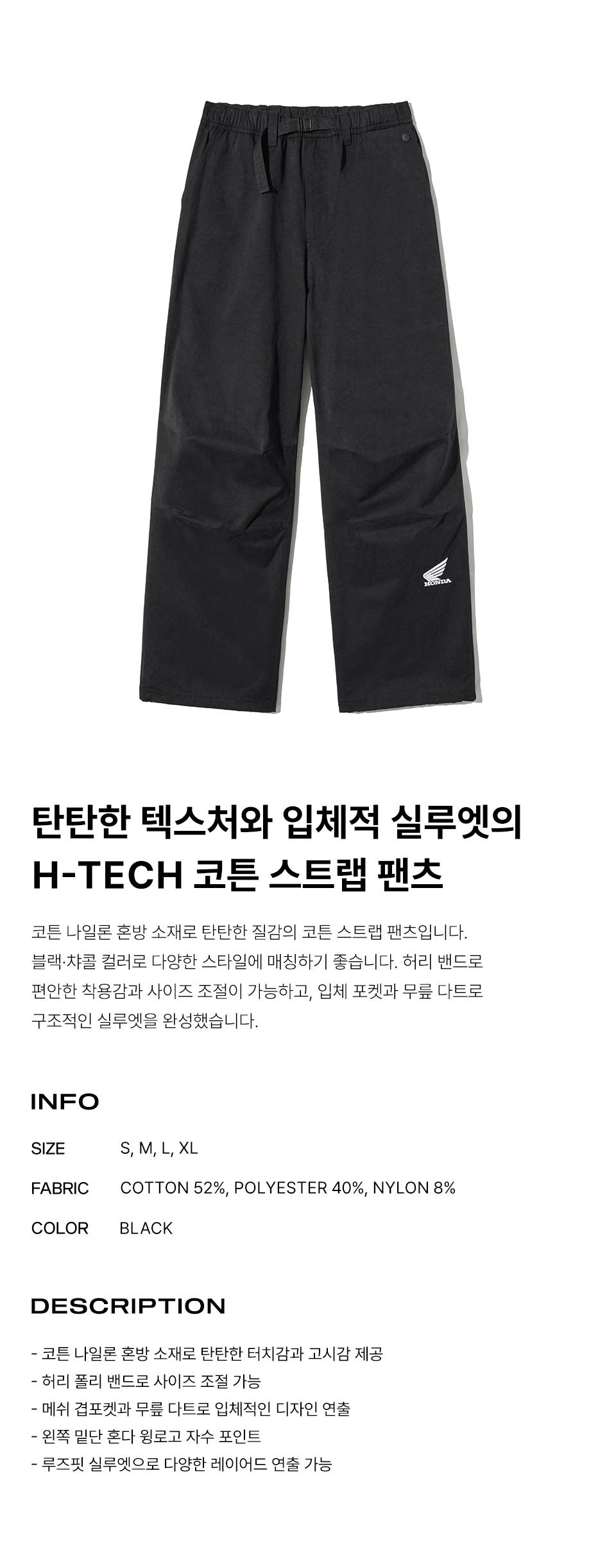 혼다 H-Tech 피치 코튼 스트랩 팬츠 블랙